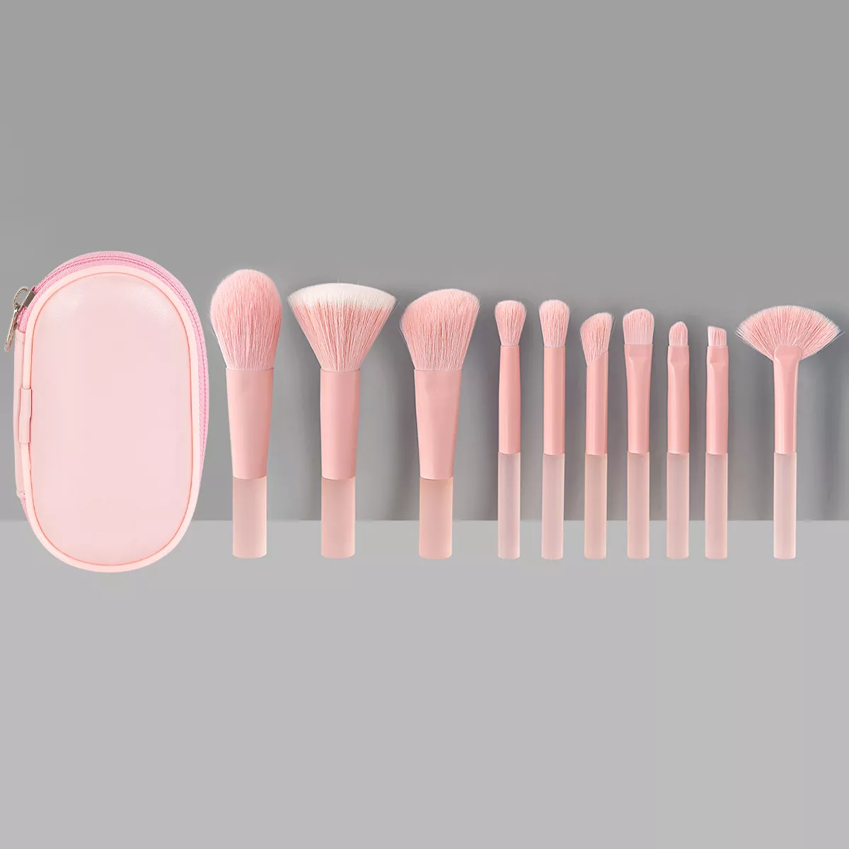 Meet the perfect companion for your on-the-go beauty routine. This 10-piece mini makeup brush set gives you everything you need to create smooth, flawless looks whether you’re at home, at work, or traveling. Designed for convenience and comfort, each brush features a lightweight plastic handle and ultra-soft wool-fiber bristles that glide gently across your skin. These compact tools fit easily into any purse, makeup bag, or carry-on, making them ideal for quick touch-ups or full glam anywhere.