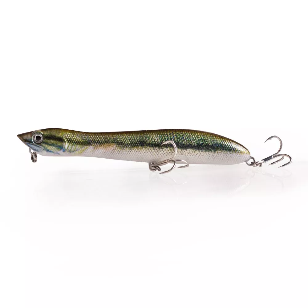 • Topwater popper with walk-the-dog rattle action