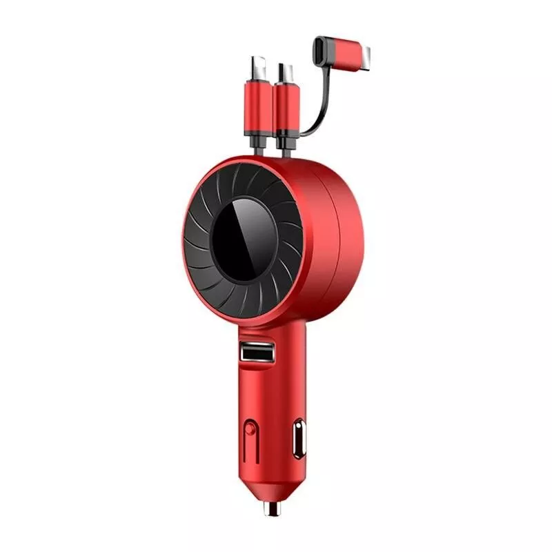 Our 3-in-1 Fast Charger Cable boasts a robust pure copper core for reduced energy loss and efficient charging without damaging your devices. It offers a decentralized protection design for safe use and supports a wide input range from 12V to 24V, making it ideal for car charging scenarios. The bold color options in red and black not only make it stylish but also easy to find in your car or bag.