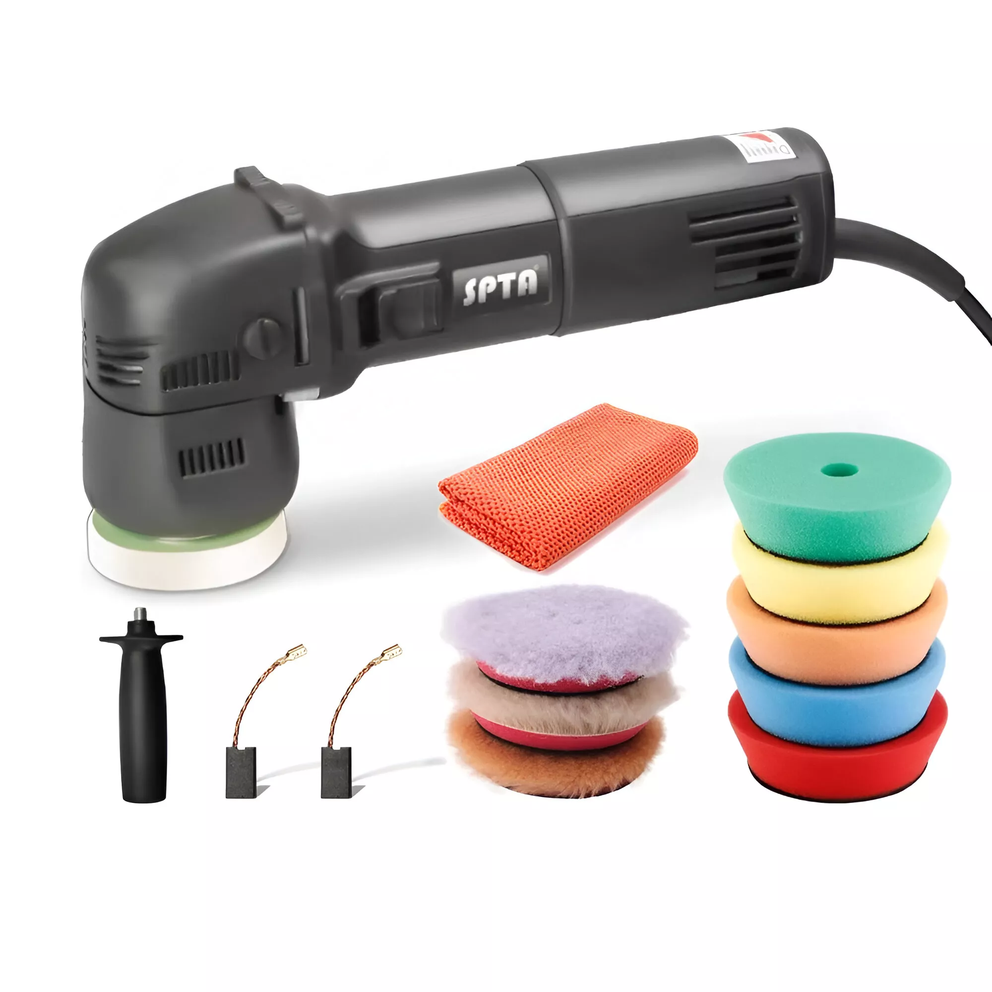 It also includes a complete set of cutting and finishing pads in different foam and wool densities, allowing you to switch effortlessly between heavy correction and final polishing.
