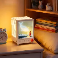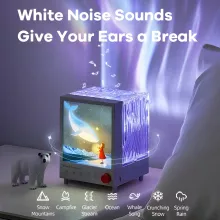 - Creates a peaceful environment with soft aurora projections