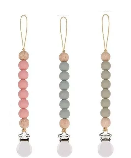 Introducing the all-in-one solution to keep pacifiers within arm’s reach, while offering a soothing teething experience for your little one. Crafted from high-quality silicone, accented with nature-inspired wooden beads, and secured with a stainless steel clip, our pacifier chain promises durability, safety, and elegance in one package.