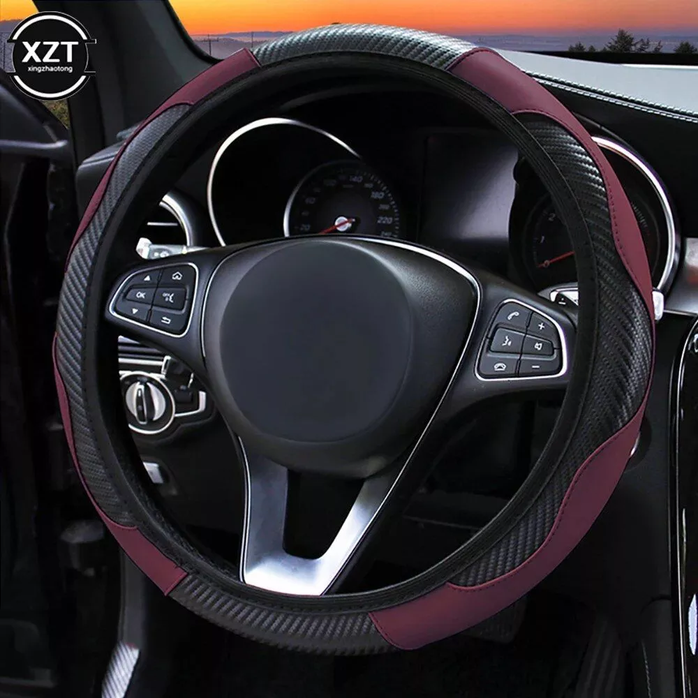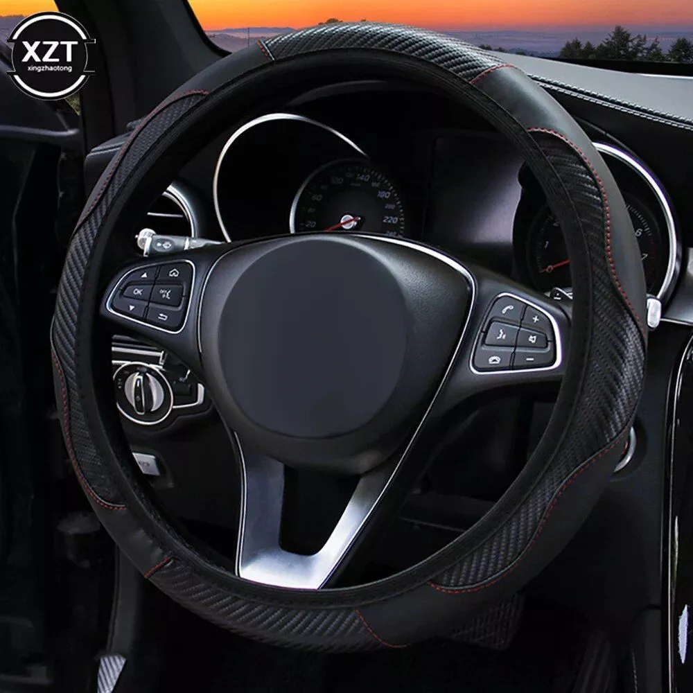 Envelop your steering wheel in the luxurious embrace of our Anti-Slip Carbon Fiber & PU Leather Steering Wheel Cover. Not only will it elevate the aesthetic appeal of your car’s interior, but it’s also a pragmatic choice that promises enhanced driving comfort.
