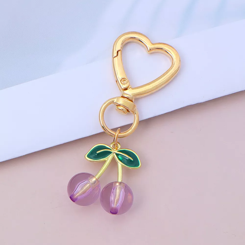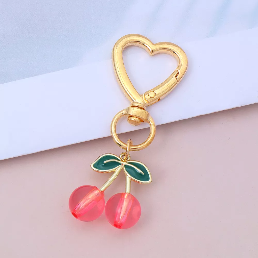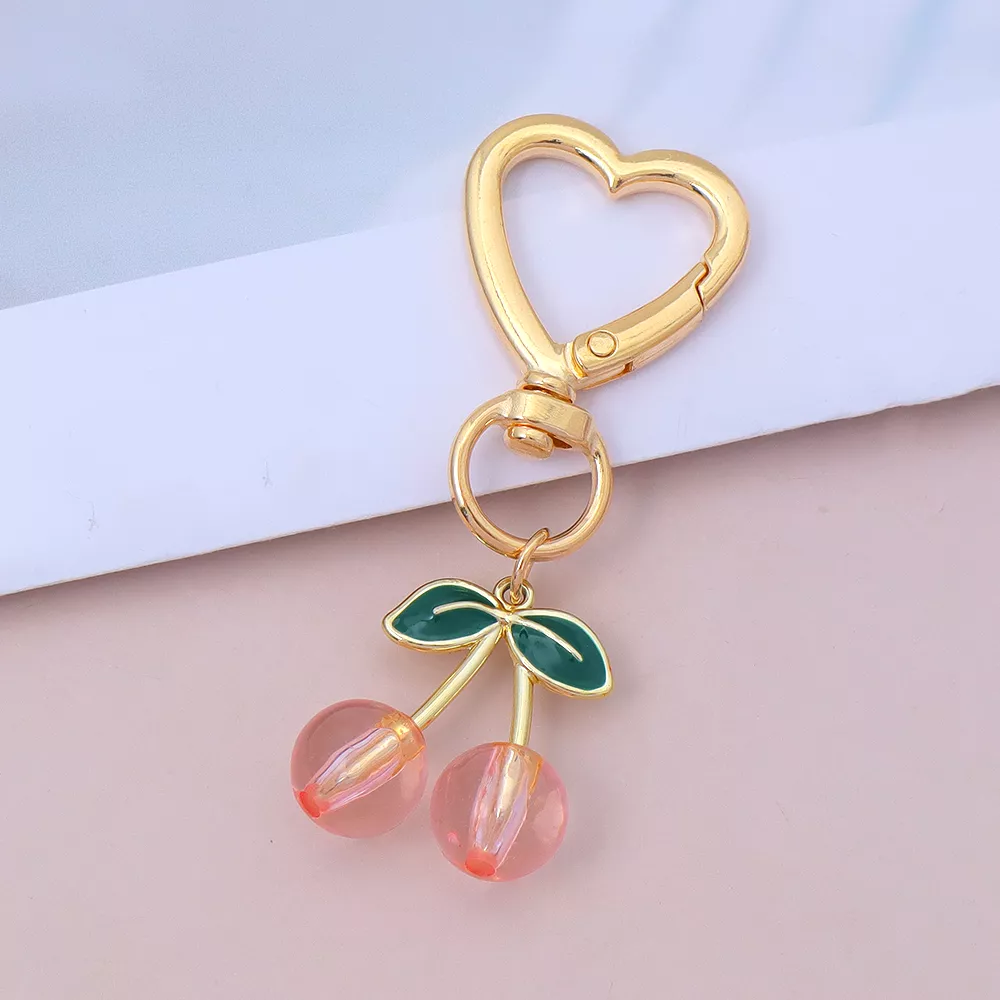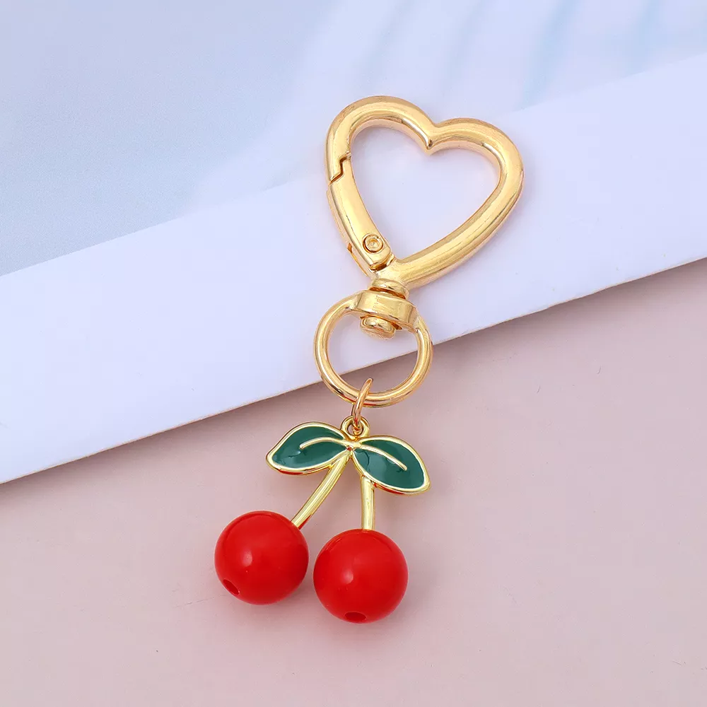 What truly sets this keychain apart is its unique cherry design paired with a heart-shaped buckle. The combination creates a sweet yet fashionable look that works perfectly as both a functional item and a decorative accessory. Made with durable zinc alloy and smooth acrylic elements, it offers a premium feel without being heavy or bulky. The gold-tone finish adds a subtle shine, making it ideal for both casual and stylish looks.