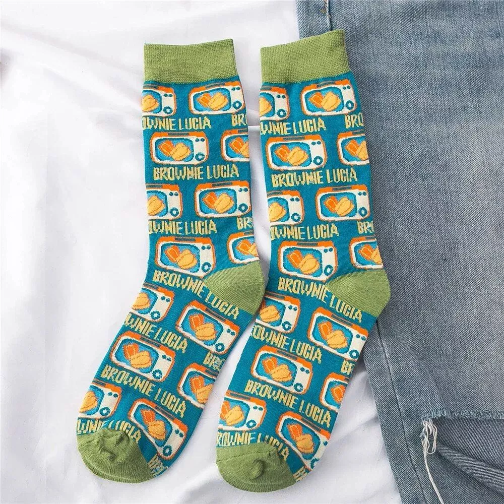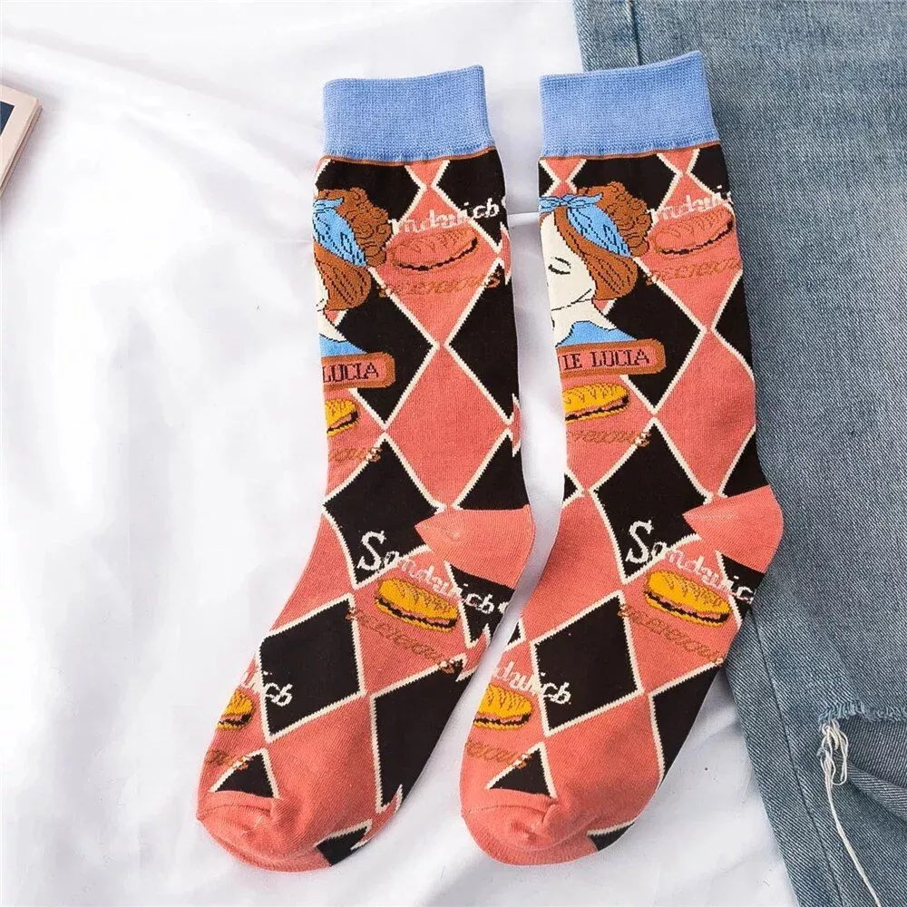 Our socks aren’t just any ordinary pair; they are a testament to quirky, fun fashion that also serves the purpose of keeping you warm through the chill of winter, spring, and autumn. The unique blend of cotton, polyester, and spandex ensures breathability, sweat absorption, and a comfortable stretch that fits most sizes. Whether you’re lounging at home, stepping out for a casual meet-up, or gifting them to someone special, these socks are designed to be a versatile, delightful choice.