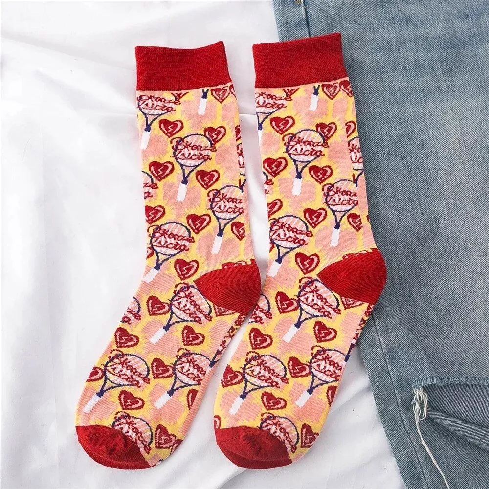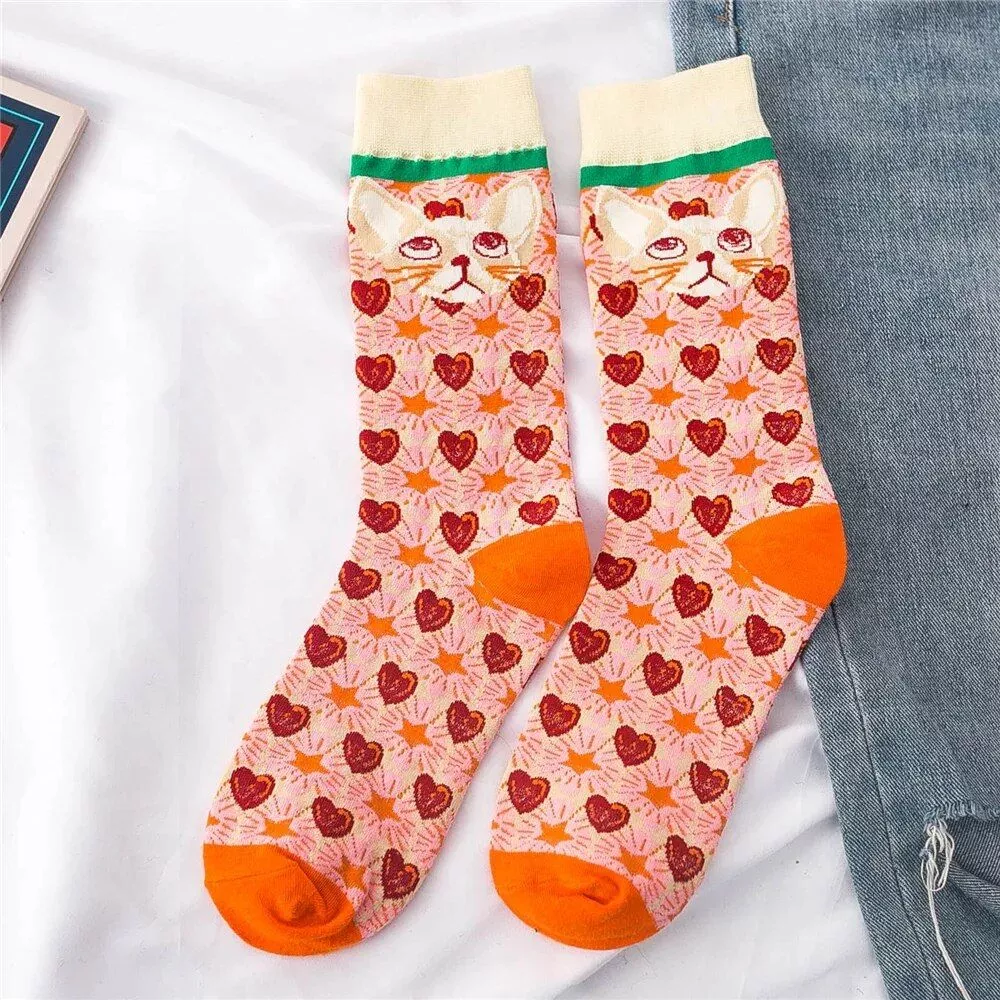 What sets these socks apart is their enchanting design, featuring cute cartoon cats and heart lattice food patterns that capture the essence of youthful, artistic expression. They are not just socks; they are a statement of fun, fashion, and comfort. The thick, standard thickness material provides ample warmth without compromising on style, making them ideal for anyone looking to add a dash of whimsy to their wardrobe.