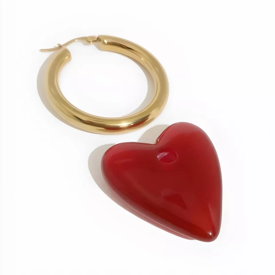 Discover the essence of vintage charm combined with a modern twist in our Red Heart-Shaped Drop Earrings. Designed for the woman who adores making a statement with her style, these earrings are more than just an accessory; they are a declaration of boldness and beauty. With their unique geometric heart design, wrapped in a stunning golden hue, they perfectly blend classic elegance with contemporary flair.