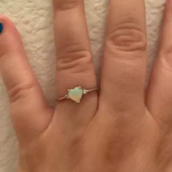 True to the pictures and even more enchanting in person, the ring has become a favorite. Its timeless design and radiant opal capture my heart every time I glance at it. An absolute delight!