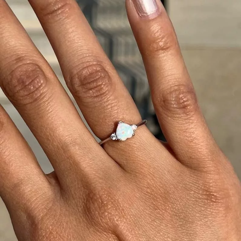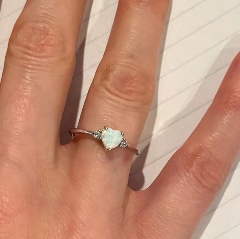 My partner and I now share the beauty of the ring. Its exquisite design symbolizes our connection, and the silver color opal adds a touch of romance. A beautiful piece that enhances our bond.