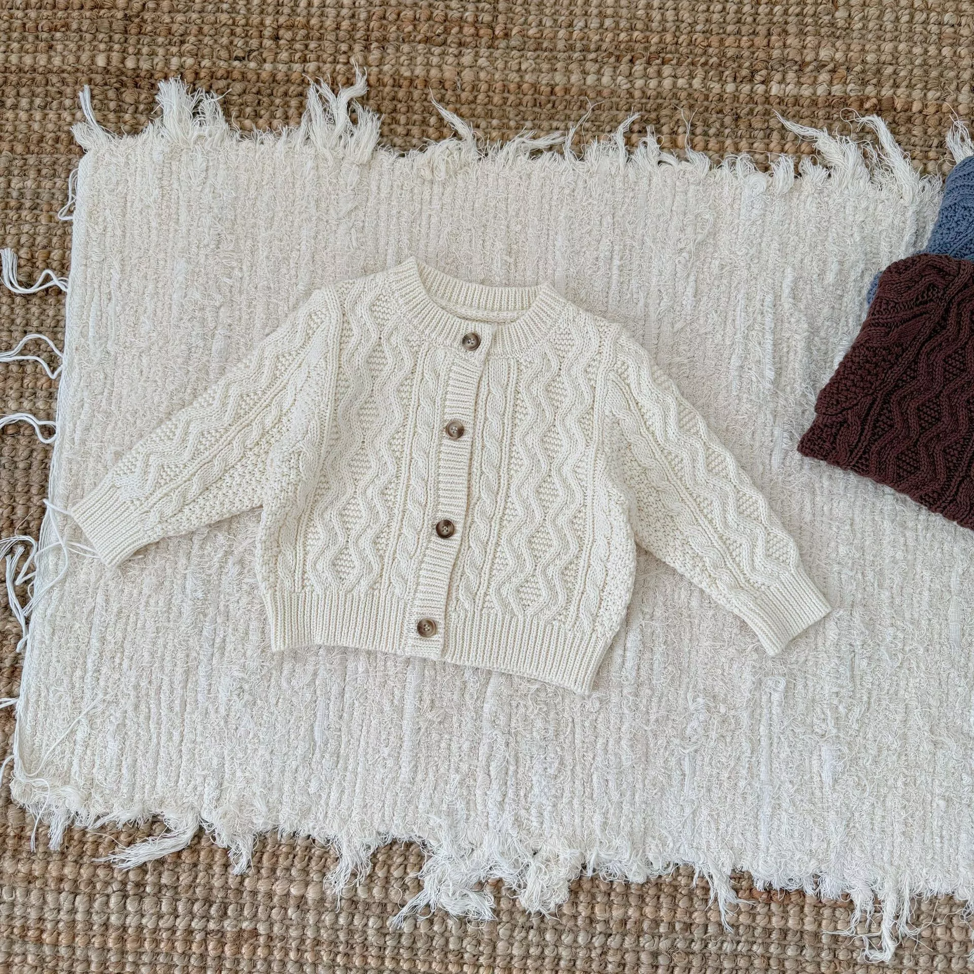 This knitted cardigan is crafted with care, combining a solid pattern and gentle texture that suits both boys and girls. The full-length sleeves and regular fit keep your child warm in autumn weather while still allowing easy movement. Its simple yet eye-catching vintage style makes it an ideal choice for outings, photo days, or everyday wear. Made with a true-to-size fit, it ensures your child stays comfortable without feeling restricted.