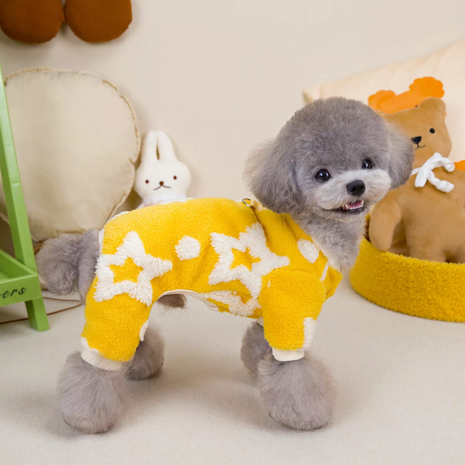 Meet the perfect cold-weather essential for your furry friend. This adorable four-legged star plush coat wraps your pet in soft, snuggly warmth during chilly autumn and winter days. Designed for small dogs and cats, it combines comfort with style, making every walk, nap, or outdoor adventure feel better and warmer. The plush polyester fabric feels cloud-soft to the touch, while the solid, cozy design keeps your pet protected from cold winds and low temperatures.
