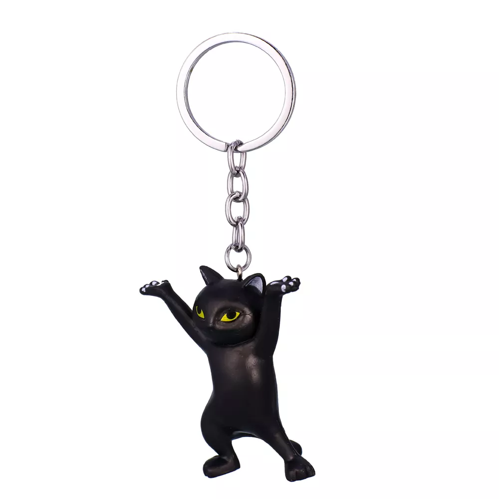 The keychain features a smooth metal finish with a strong alloy ring that holds your keys securely. The resin cat figure is detailed, cute, and eye-catching, making it a great conversation starter.