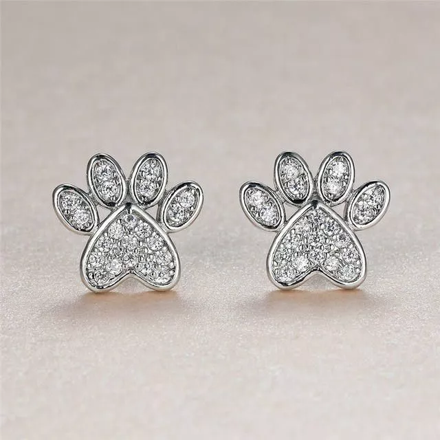 Indulge in the allure of these Cute Heart Cat Paw White Zircon Stud Earrings. Elevate your jewelry collection and make every moment special. Order your pair now and experience the joy of wearing exquisite, thoughtfully crafted earrings that celebrate the beauty of life.