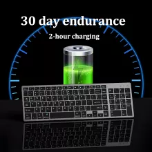 The keyboard’s USB-C rechargeable battery ensures extended use without frequent recharges. A single two-hour charge powers the device for up to three months, thanks to intelligent power-saving technology. Engineered for noise-sensitive environments, the keyboard features 99% silent clicking, so you can work or study without disturbing those around you. The 6° tilted ergonomic design minimizes wrist strain, providing hours of comfortable typing.
