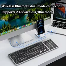 Upgrade your workspace with the Dual Bluetooth Wireless Keyboard, designed specifically for Apple devices. This sleek, ultra-slim keyboard delivers unparalleled convenience, allowing you to connect up to three devices simultaneously with Bluetooth 5.0 and 2.4G wireless technology. Whether you’re typing on your MacBook, iPad, or iPhone, enjoy a smooth, lag-free experience with an impressive operating range of up to 33 feet.