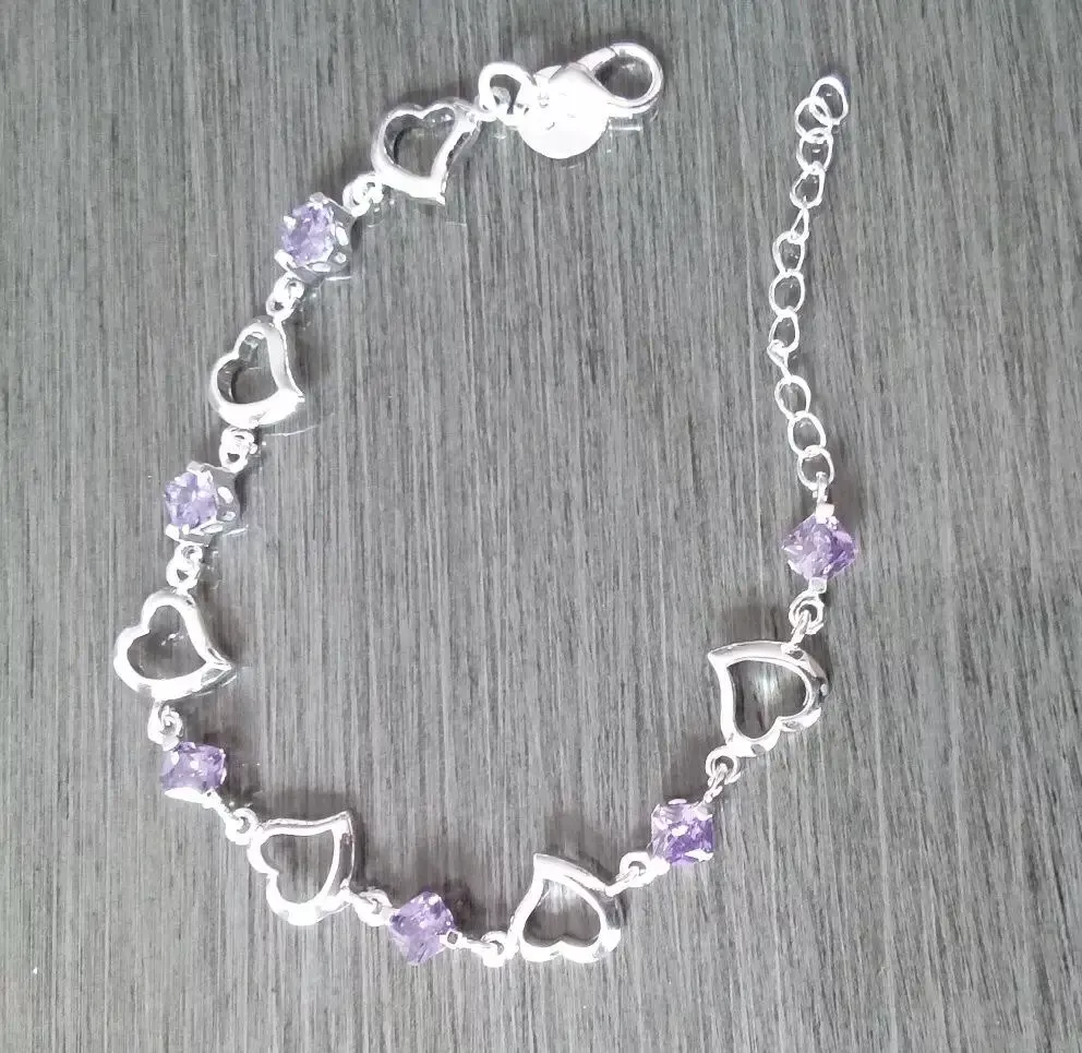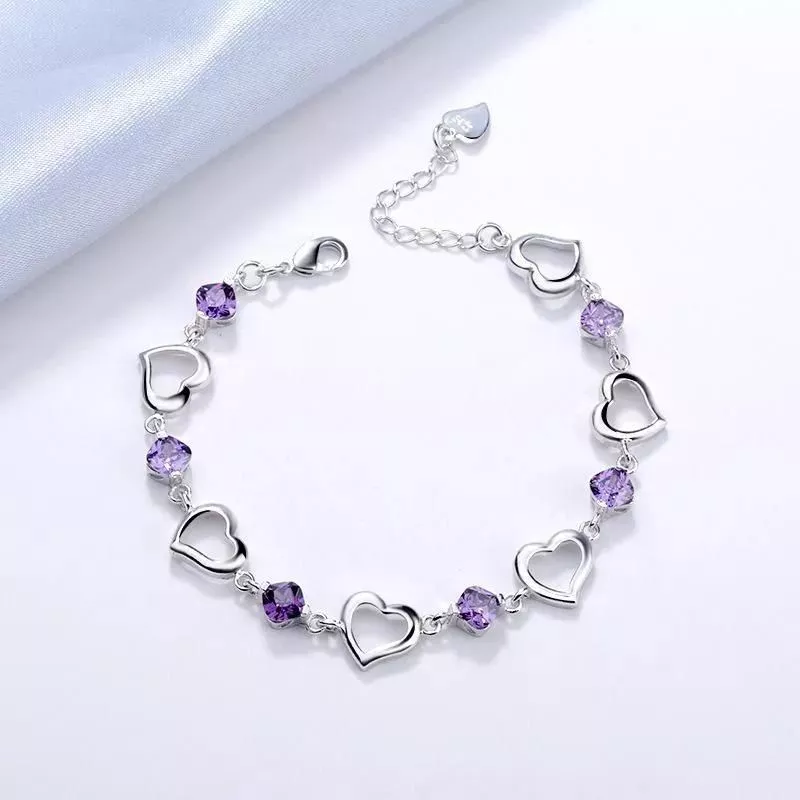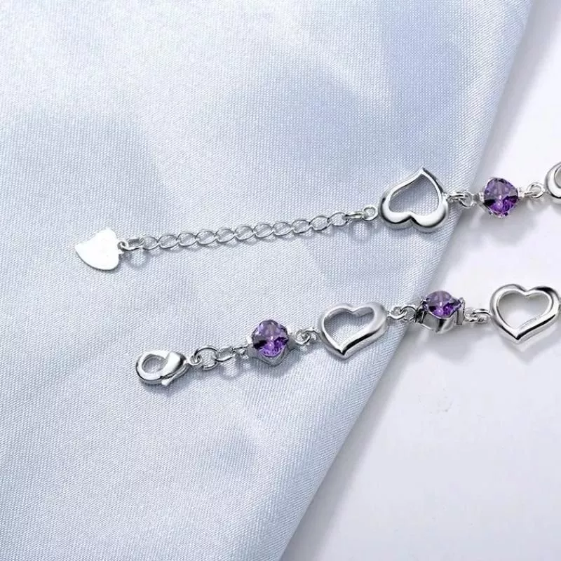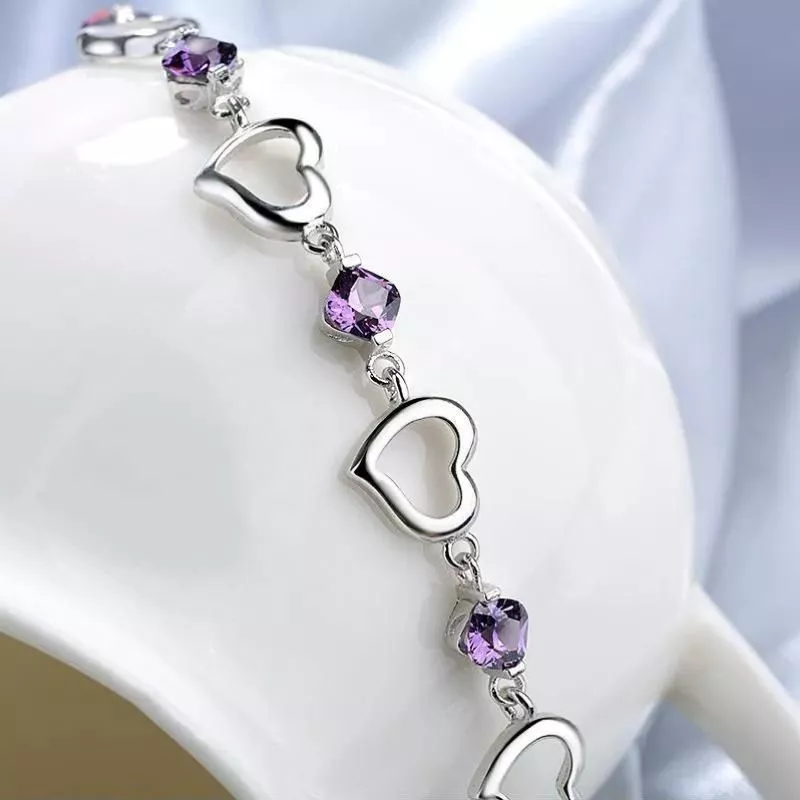 With its blend of style, quality, and meaning, this 925 Sterling Silver Heart & Purple Crystal Zircon Bracelet is not just jewelry; it’s a celebration of love and elegance. Order now to add this timeless piece to your collection or gift it to someone special and make their day unforgettable.