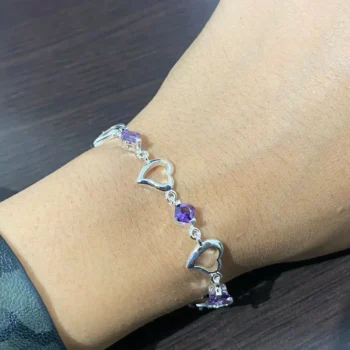This bracelet stands out for its quality and design. Unlike other jewelry, it is made from 925 Sterling Silver, known for its purity and resilience. The heart-shaped Purple Crystal Zircon centerpiece is not just eye-catching but signifies deep love and passion. Whether you’re dressing up for a special event or adding a finishing touch to your everyday look, this bracelet is versatile enough to suit any occasion.