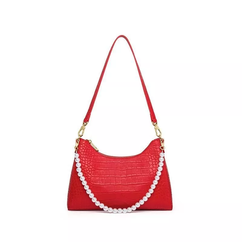 Our Red Leather Shoulder Bag shines in versatility. It’s perfect for daily commuting, adding a pop of color and sophistication to your work attire, or for special occasions where its pearl embellishments will complement your elegance. Its adjustable and removable strap makes it a go-to choice for any event, ensuring you always step out in style.