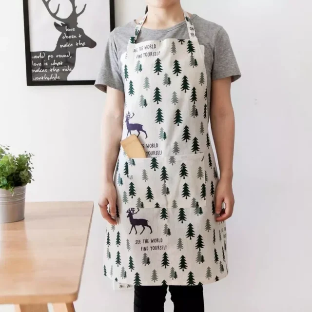 Embrace the joy of the holiday season with our Festive Deer Print Cotton Apron! Designed for those who love to add a touch of cheer to their cooking and baking adventures, this apron is not just a functional kitchen accessory, but a symbol of festive joy. Whether you’re whipping up a family feast, baking Christmas cookies, or grilling at a barbecue, our apron adds a dash of holiday spirit to your culinary activities.