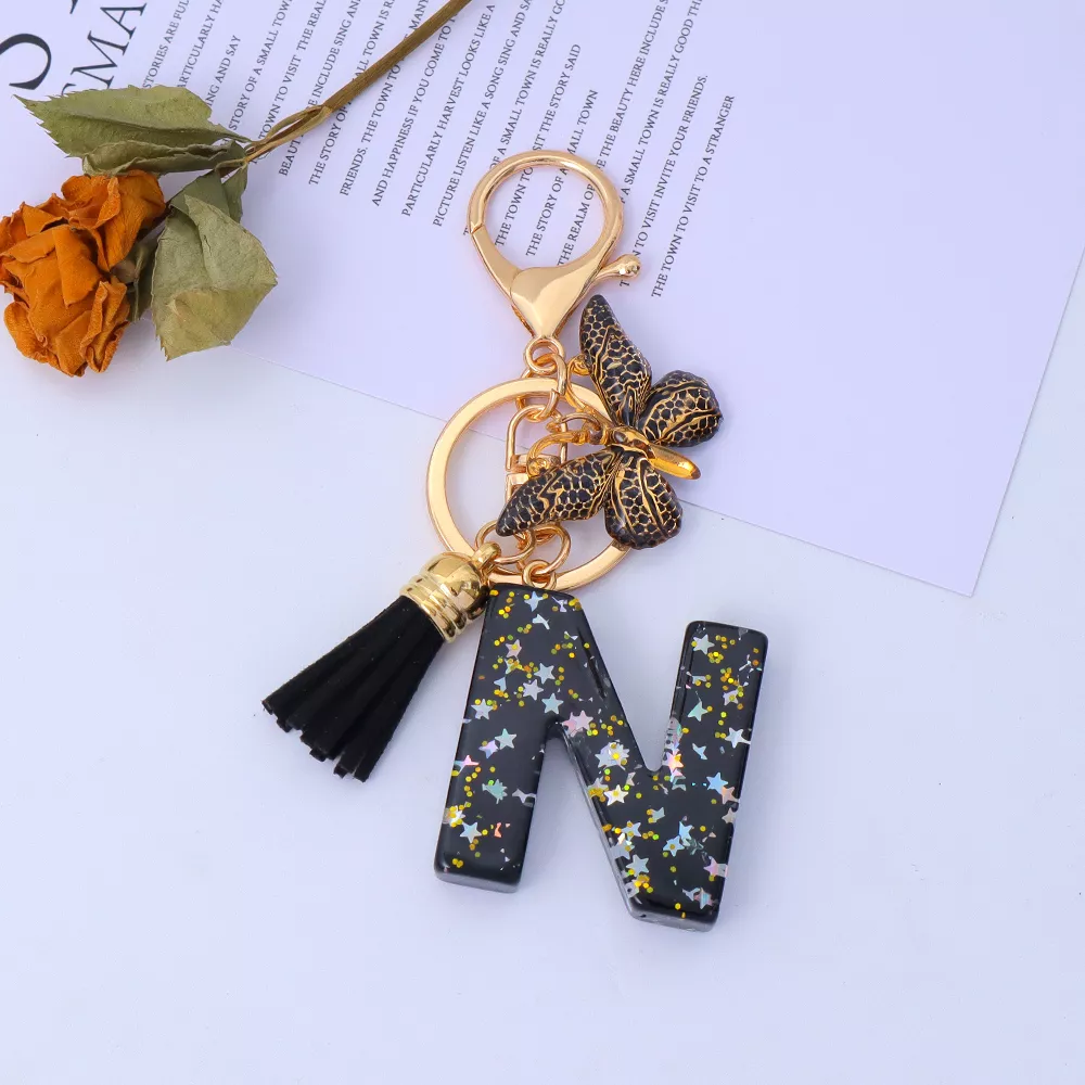 Meet the key accessory that turns everyday items into something special. The Gold Initial Sequin Star Keychain with Tassel Bag Charm is designed for those who love stylish details with meaning. Featuring a sparkling black star, a trendy tassel, and your chosen letter, this charm adds instant personality to your keys, wallet, or handbag. Simple, modern, and eye-catching, it’s the perfect small detail that makes a big impression.