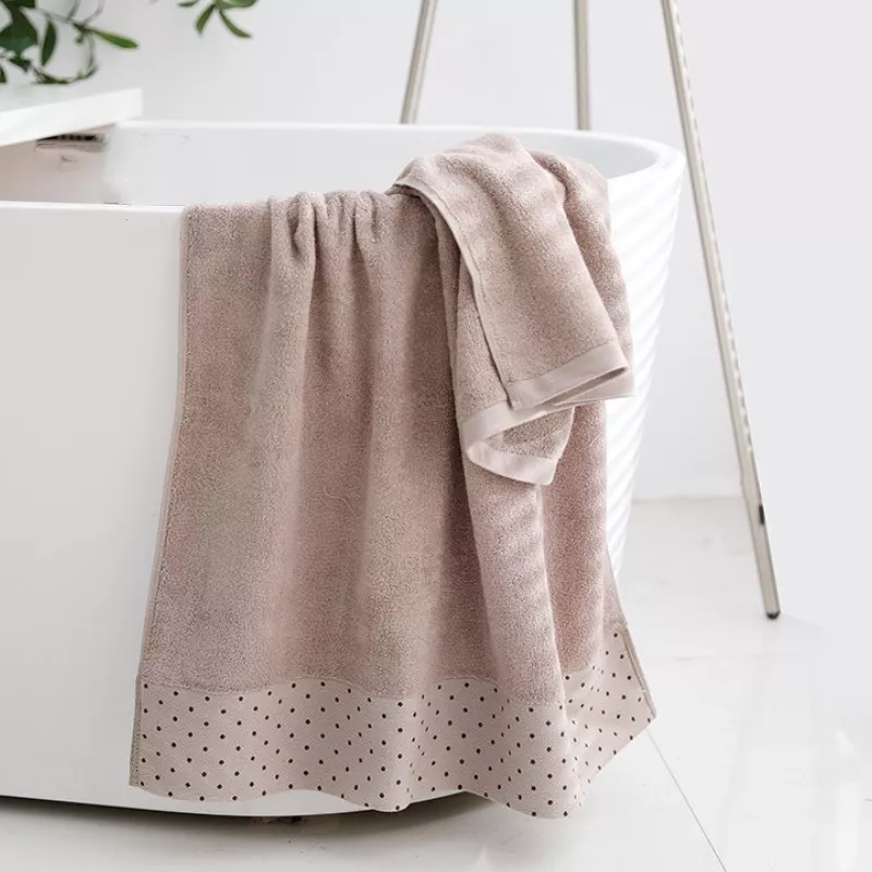 Crafted with care, the towel features delicate jacquard detailing with charming dot patterns that elevate the look of any bathroom. The double-side hem stitching enhances durability, ensuring the towel keeps its shape and strength even after repeated machine washes. Lightweight yet highly absorbent, it efficiently soaks up moisture in seconds, giving you a refreshing and cozy drying experience every time.