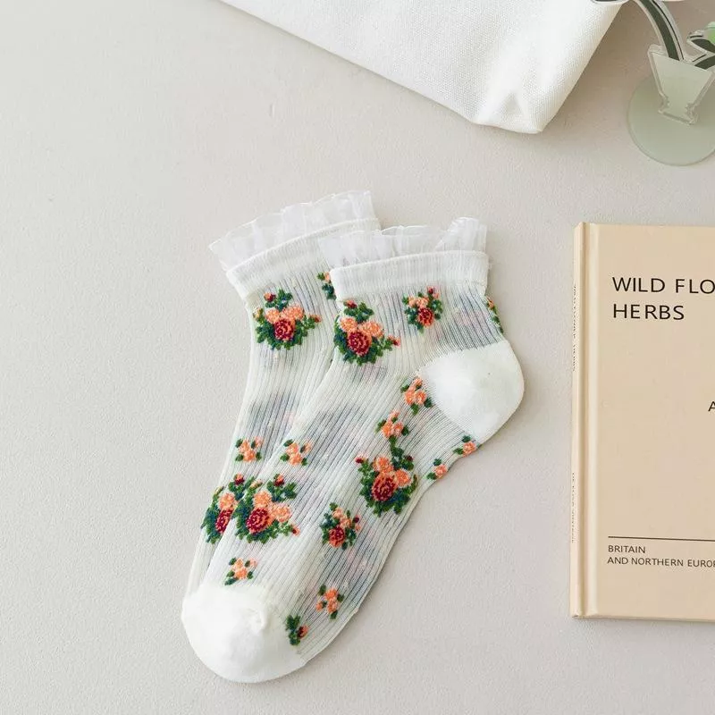 Discover Elegance & Comfort: Harajuku Retro Floral Embroidered Lace Ruffle Socks