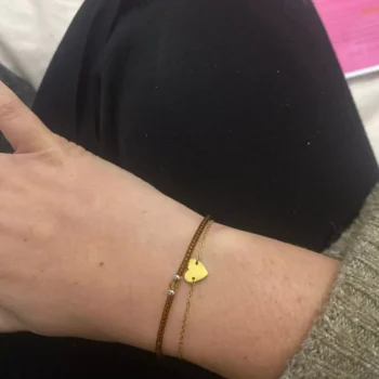 The quality of this bracelet is exceptional. It maintains its shine and looks new even after months of wear ✨✨✨✨
