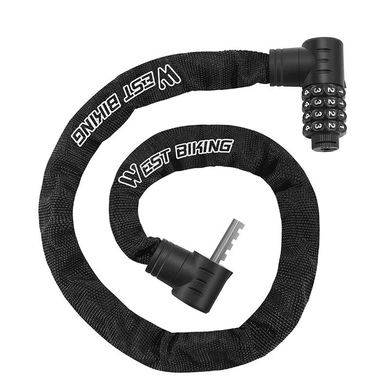 Built for strength and convenience, this lock uses a sturdy steel chain reinforced with zinc alloy and wrapped in a tough nylon sleeve to prevent scratching. You can choose between a classic key system or an upgraded password option, giving you flexibility in how you secure your ride. At about 27.5 inches long, it offers enough reach to lock your frame and wheel to most racks. Its rustproof construction keeps it dependable in rain, heat, or cold, making it perfect for year-round use.
