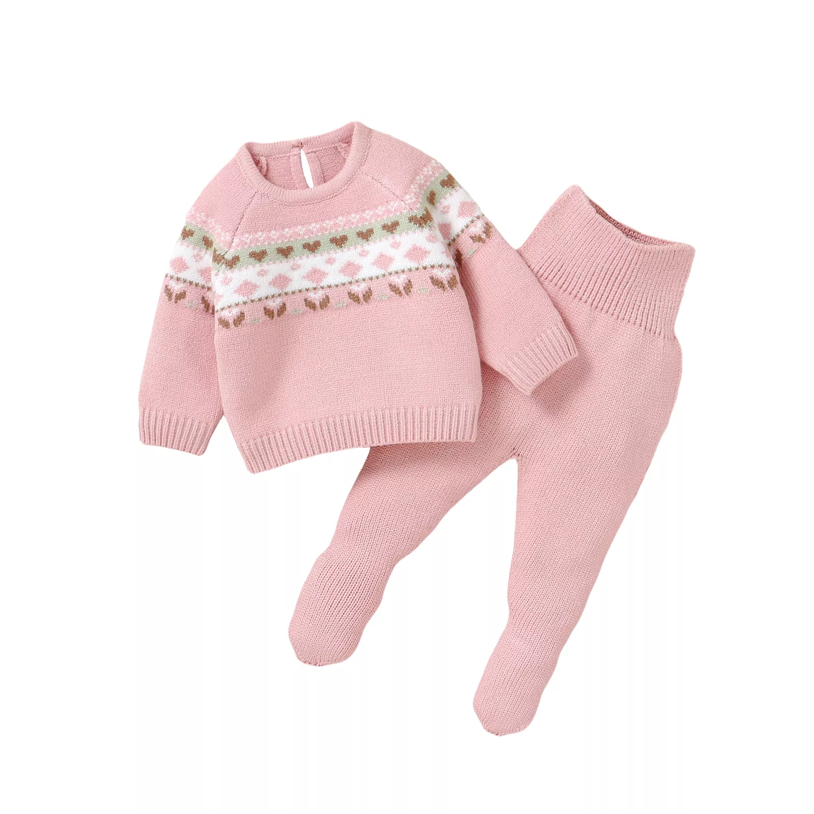 Keep your little one wrapped in comfort and charm with this Knitted Baby Sweater and Pants Set. Designed for newborns up to 9 months, this two-piece outfit includes a soft long-sleeve pullover and matching pants with foot wraps, making it perfect for cooler days. Crafted from a premium blend of viscose, polyester, and nylon, it offers the ideal mix of warmth, flexibility, and durability to keep your baby cozy and content all day long.