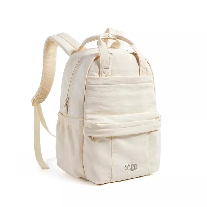 This backpack stands out because of its balance between lightweight comfort and practical storage. It’s designed for real life – tight spaces, quick packing, and long days. The material is tough yet soft to touch, resisting wear while staying comfortable against your body.