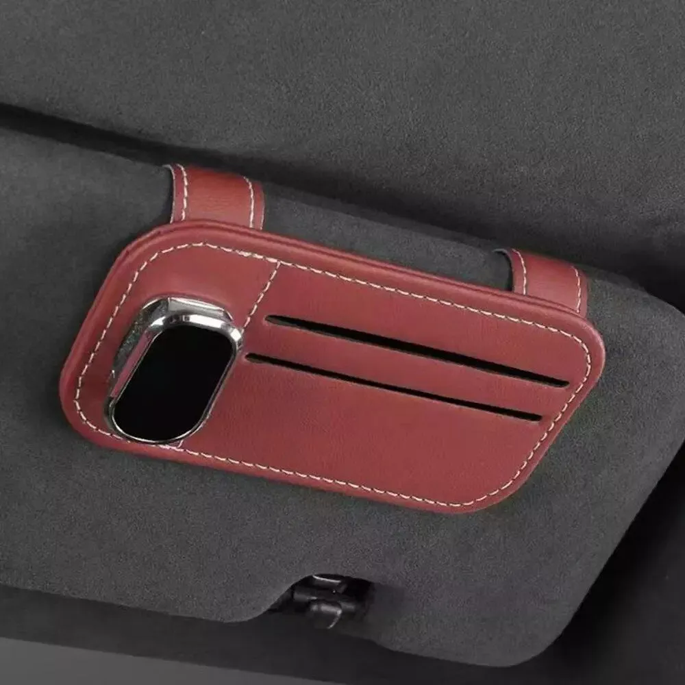 Our Leather Car Sun Visor Sunglasses Holder stands out with its exceptional design, tailored to complement your vehicle’s interior while providing unparalleled functionality. The top handle design ensures minimal interference with your visor’s primary function, while the additional storage space enhances your driving experience. Never again will you have to fumble around for your sunglasses or cards while on the road. Choose smart, choose style, choose our car visor organizer.