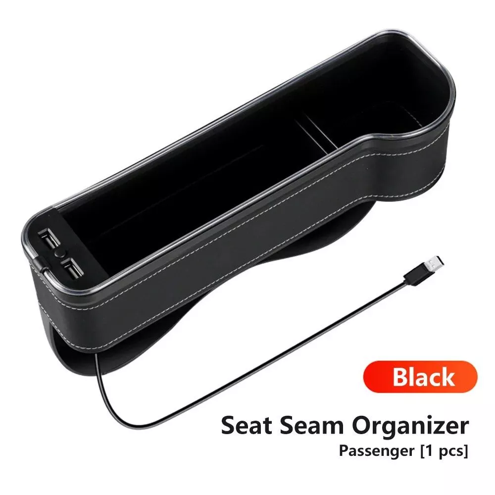 Our Car Seat Gap Organizer is designed with meticulous attention to the needs of the modern driver. Its basic features include a robust artificial leather build, a captivating RGB color palette that elevates your interior’s ambiance, and the practicality of additional charging ports. Tailored to keep your essentials neatly organized and within easy reach, this organizer is perfect for everyday use, long trips, or simply to keep your vehicle in top-notch condition.