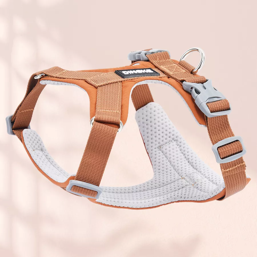 Unlike bulky or rigid designs, this vest-style harness is exceptionally breathable—perfect for warm summers and layered comfort in winter. Its solid-color design comes in stylish shades like black, brown, yellow, and light blue, allowing your dog to look great during every outing. Built to withstand year-round use, it’s a dependable choice for park days, hikes, neighborhood walks, or travel.