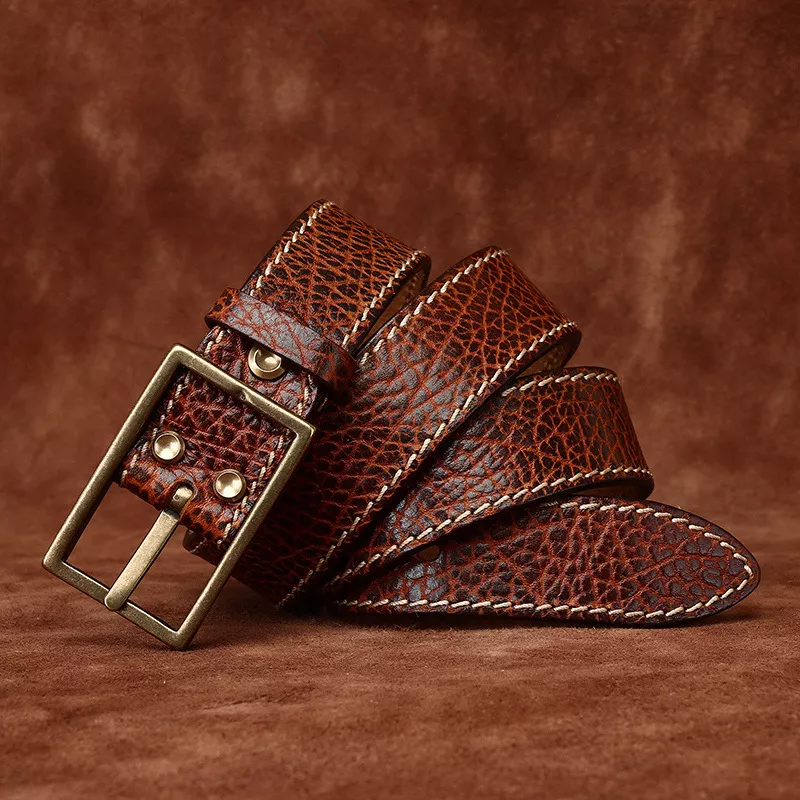Luxury Genuine Leather Belt for Men – Retro Brass Buckle 1.5 Inch Wide