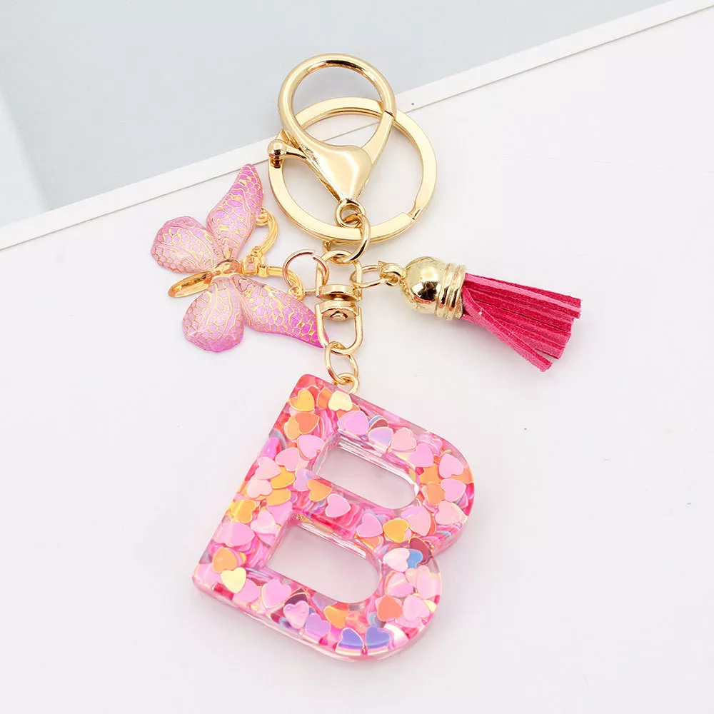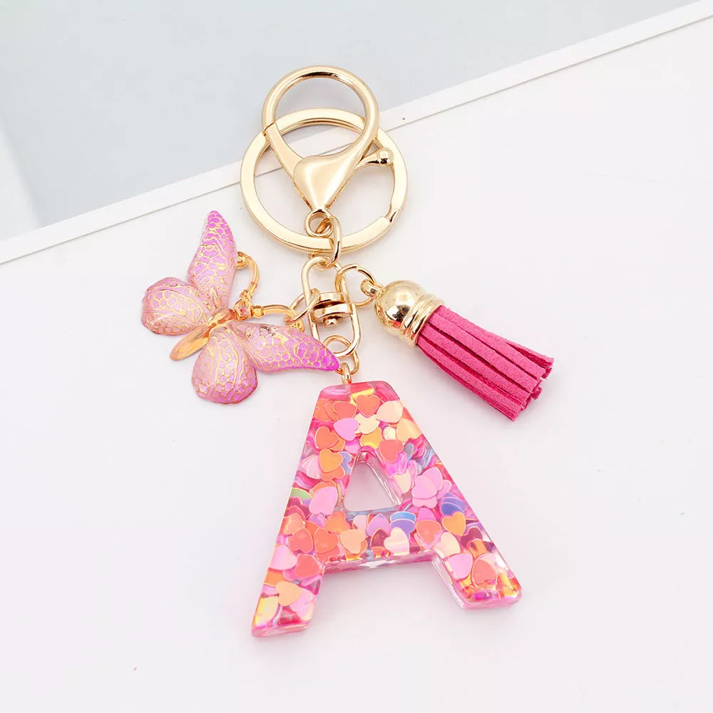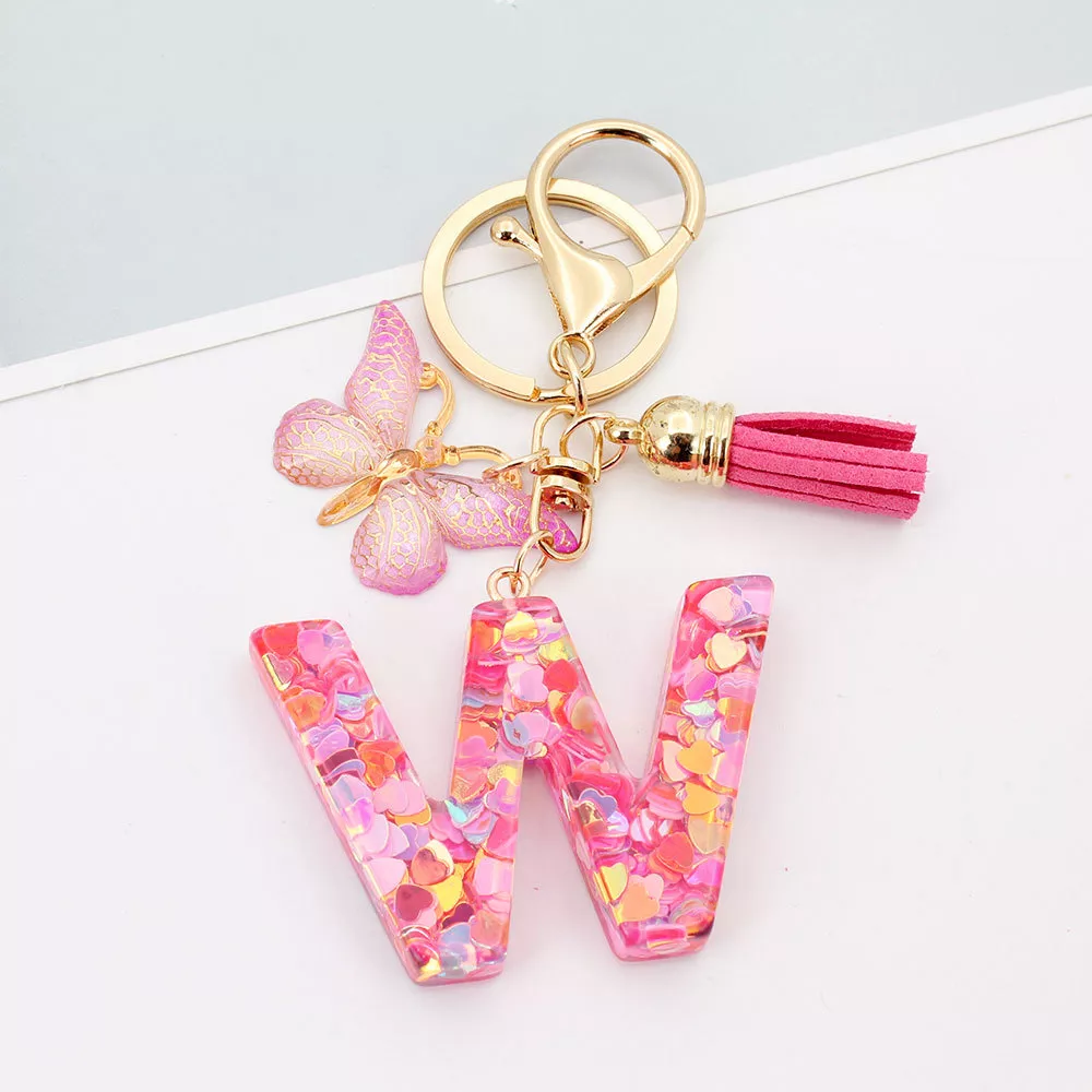 Carry your initials in style with this Fashion A-Z Letters Acrylic Keychain — a charming accessory designed for women who love a mix of elegance and playfulness. Each piece features a sparkling acrylic letter, a delicate pink butterfly pendant, and a matching tassel that adds a touch of sophistication to your everyday essentials. Whether it’s attached to your keys, handbag, or car mirror, this keychain brings a hint of personality and shine wherever you go.