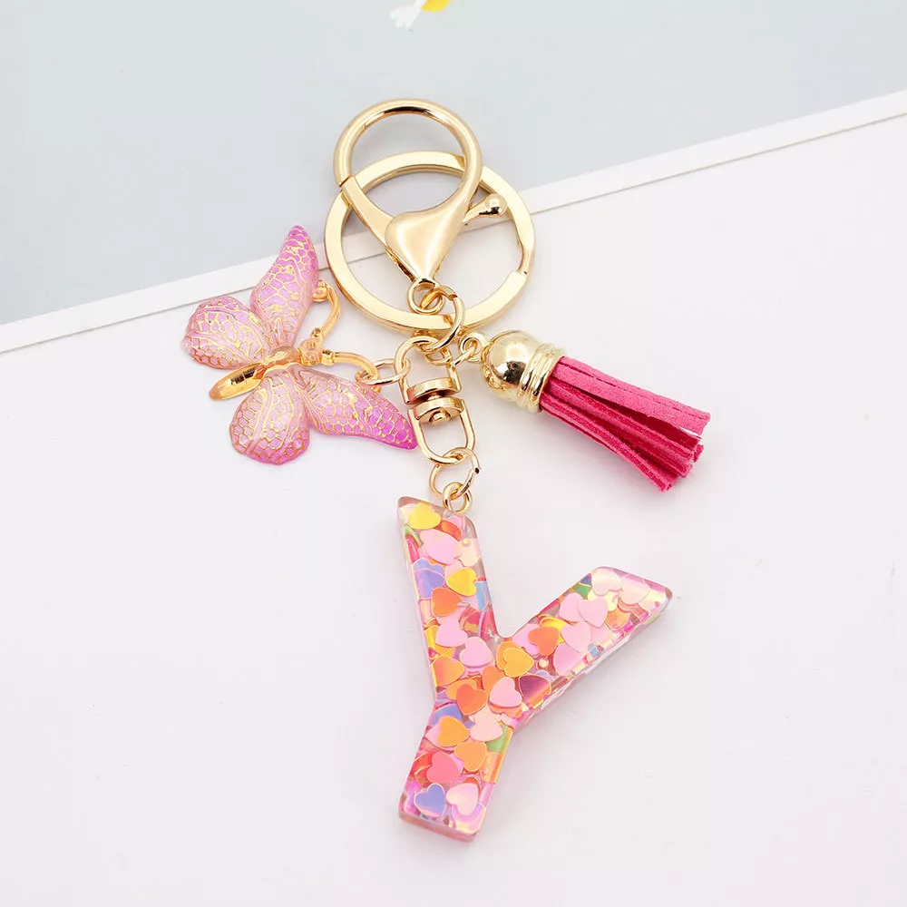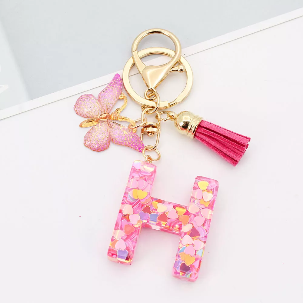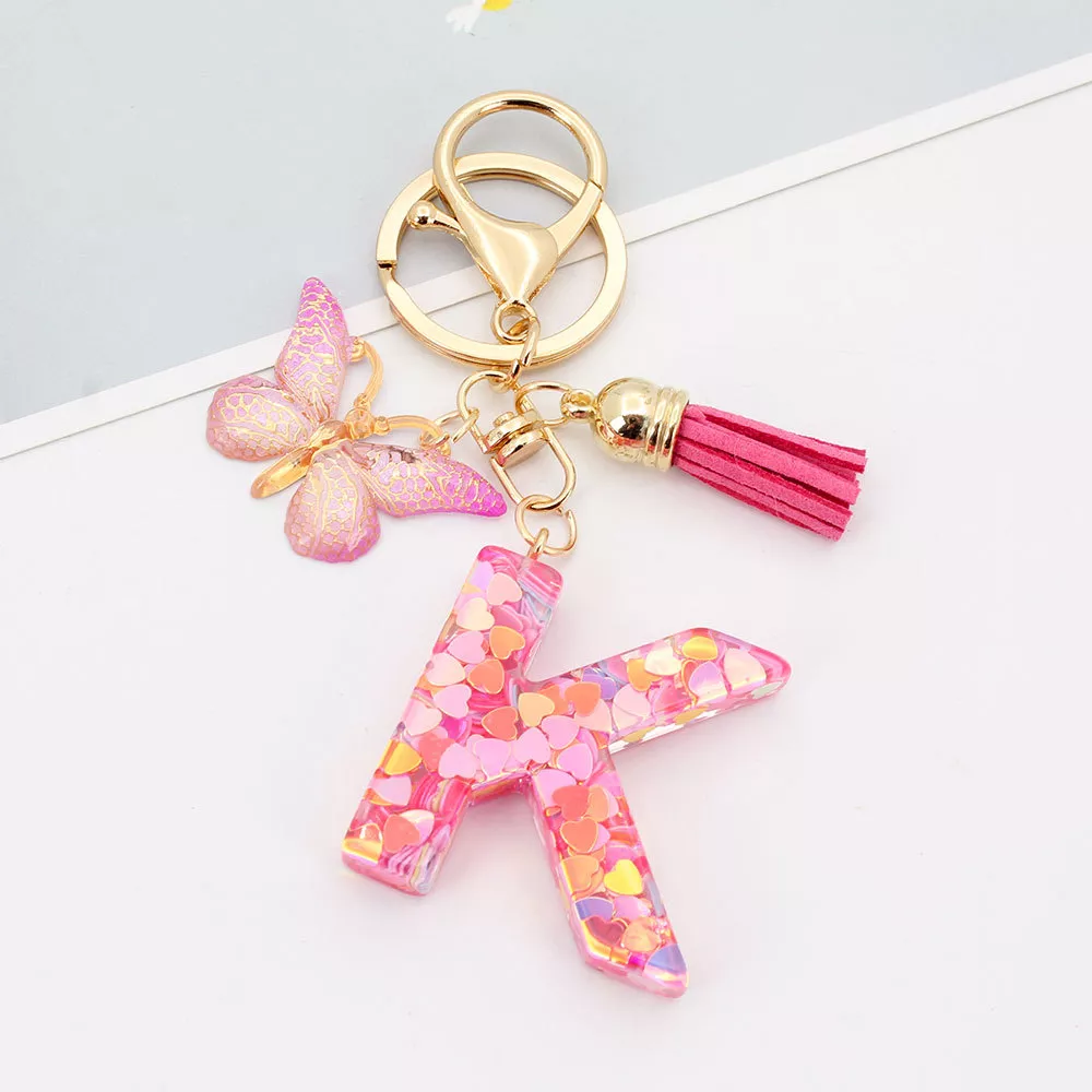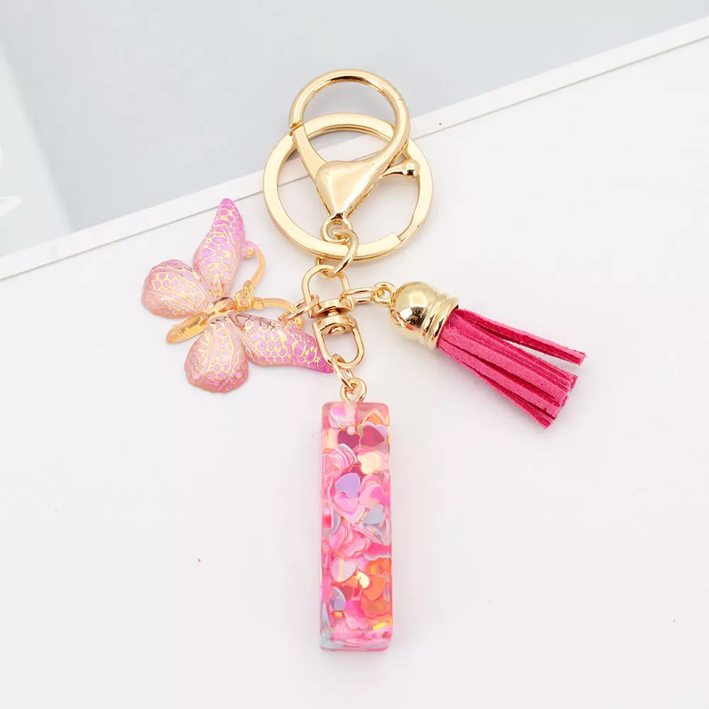 Carry your initials in style with this Fashion A-Z Letters Acrylic Keychain — a charming accessory designed for women who love a mix of elegance and playfulness. Each piece features a sparkling acrylic letter, a delicate pink butterfly pendant, and a matching tassel that adds a touch of sophistication to your everyday essentials. Whether it’s attached to your keys, handbag, or car mirror, this keychain brings a hint of personality and shine wherever you go.