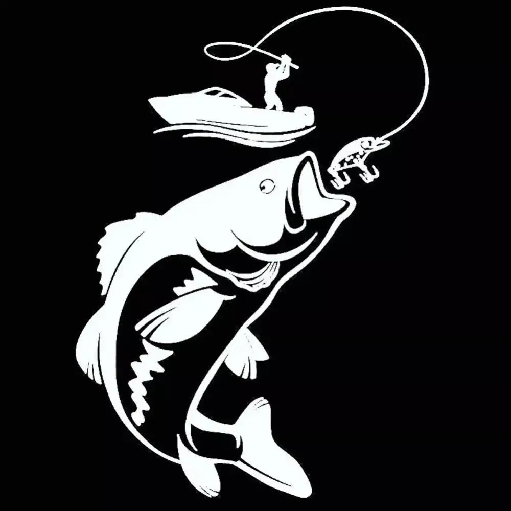 Reflective Fisherman & Fish Boat Car Decal – Waterproof PVC Vehicle Sticker