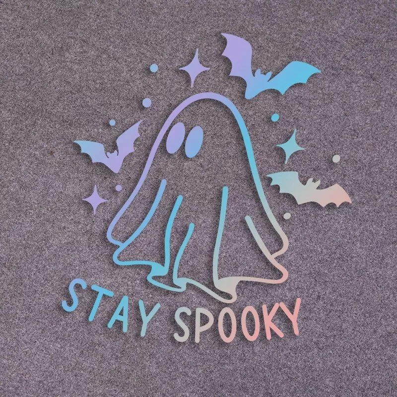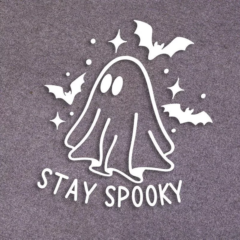 Embrace the spirit of Halloween and give your vehicle a ghoulish touch with our Reflective Halloween Ghost & Bat Car Stickers! These «Stay Spooky» vinyl decals are designed to cast a chilling vibe as you cruise through the night. Easy to apply and even easier to love, these stickers are perfect for anyone looking to add a dash of the macabre to their daily drive during the spooky season.