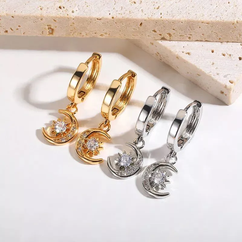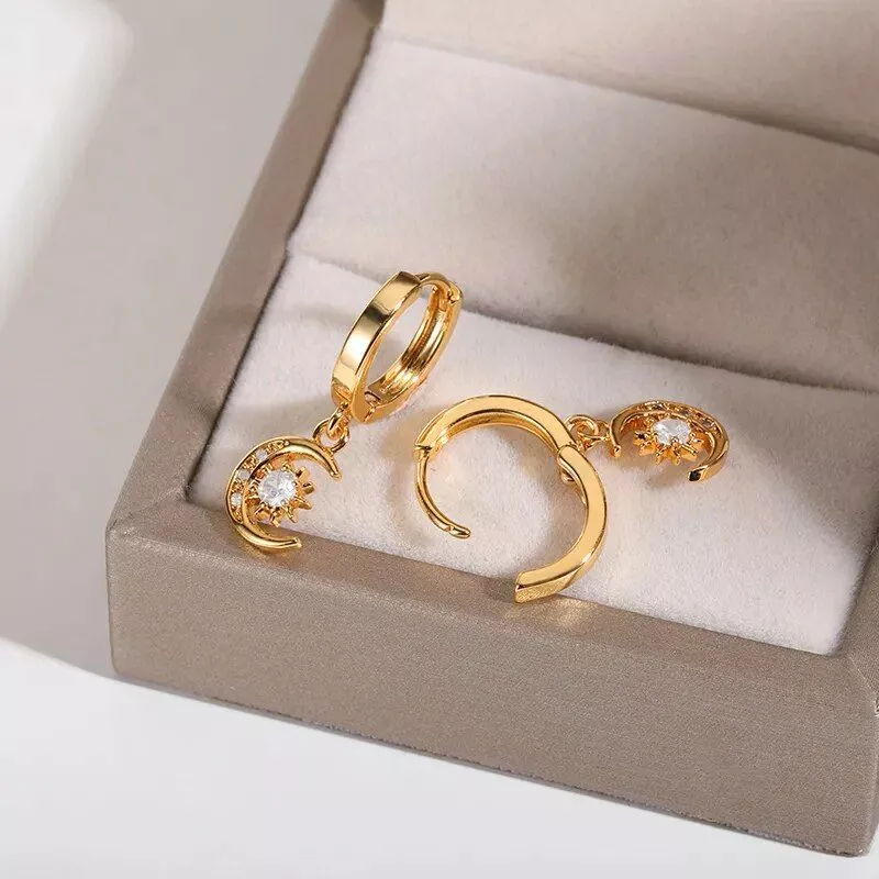 Aside from their exquisite design and quality materials, the Starry Moonlight Hoop Earrings are a testament to timeless elegance. The combination of stainless steel and zircon brings both durability and sparkle, ensuring that these earrings remain a cherished part of your collection for years to come. Their unique star and moon design symbolizes endless love and dreams, making them more than just a piece of jewelry.