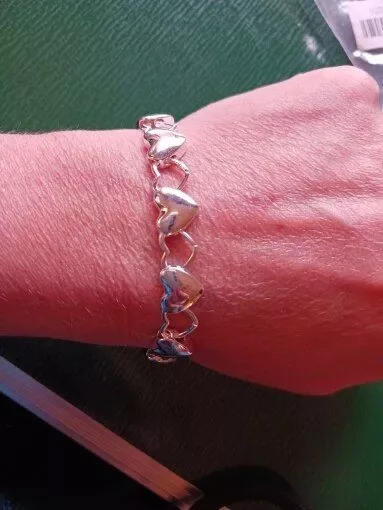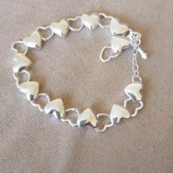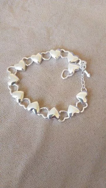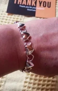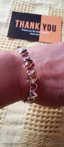 Arrived on time🤩Thanks🫂 I'm really pleased with my purchase. The bracelet caught my eye immediately, and I think I might even like it more in person than in the photos. It's crafted from silver and features adorable little hearts 😍❤️. It arrived right on schedule and was packaged securely. Overall, I'm extremely satisfied with my purchase. A big thank you!