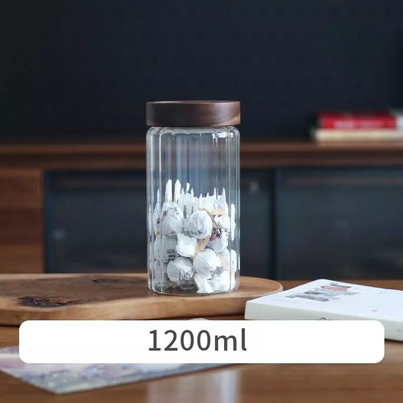 Keep your kitchen beautifully organized with this Striped Glass Tea Jar with Wooden Lid — the perfect blend of style, practicality, and eco-conscious design. Crafted from high borosilicate glass, this elegant jar offers a crystal-clear view of your favorite ingredients while ensuring long-lasting durability. The solid wood lid seals tightly, locking in freshness and keeping moisture, air, and odors out. Whether used for tea leaves, coffee beans, spices, or snacks, this jar is as versatile as it is beautiful.
