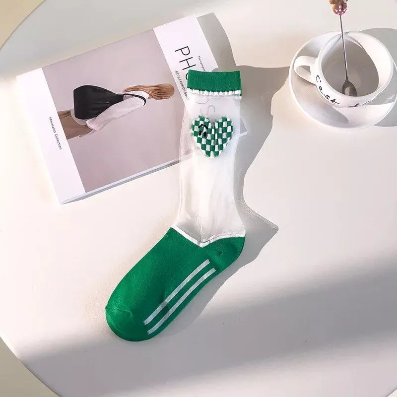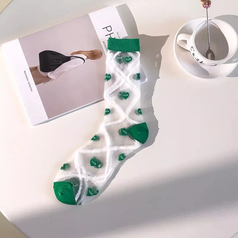 Step into a world of style and comfort with our Summer Heart Pattern Mesh Socks for Women. These thin, transparent crystal silk stockings are the perfect blend of kawaii charm and practicality, making them a must-have in your wardrobe. Whether you’re lounging at home, stepping out in your favorite sandals, or adding a playful touch to your office attire, these socks are designed to keep you comfortable and stylish all day long.