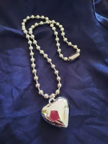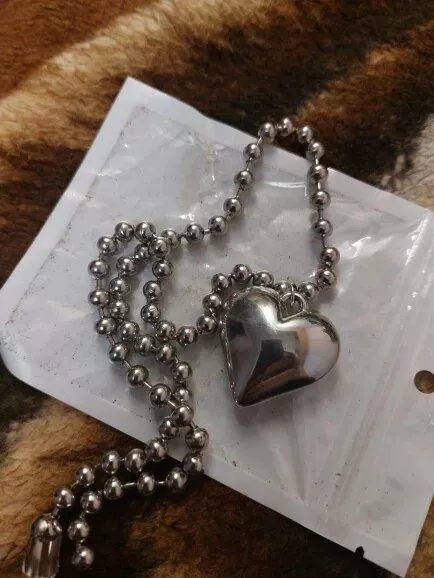 So the heart is quite large making it a great statement piece. I wore this with a Grinch inspired dress since his heart needs to grow three sizes. It was great quality and will also be great for any Valentine's Day outfits. Fits close to the neck being slightly larger than a choker.