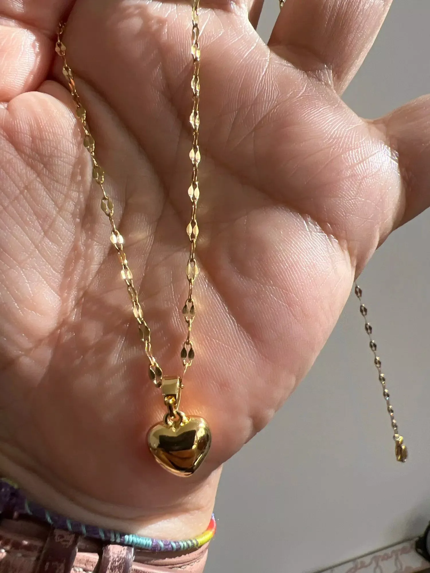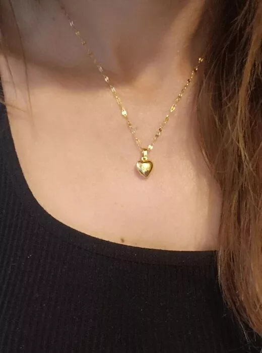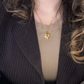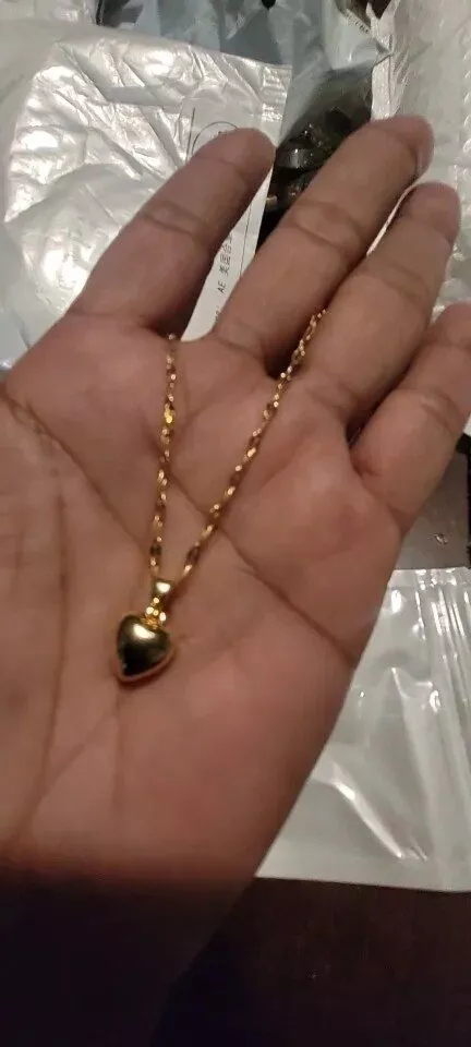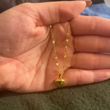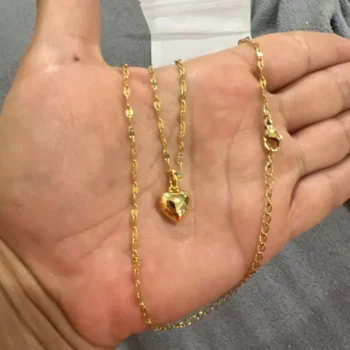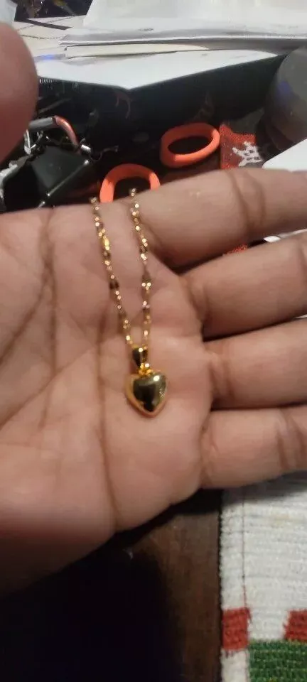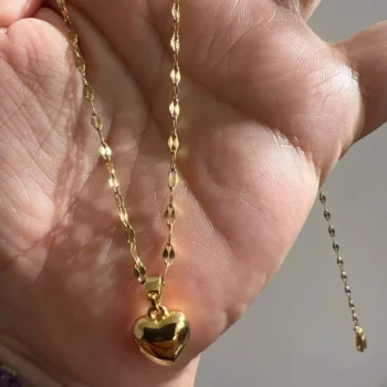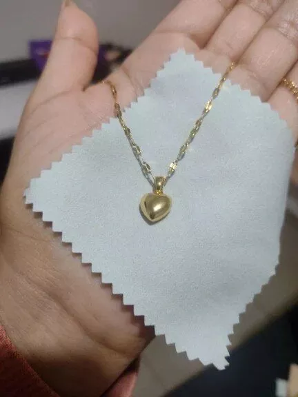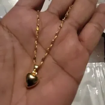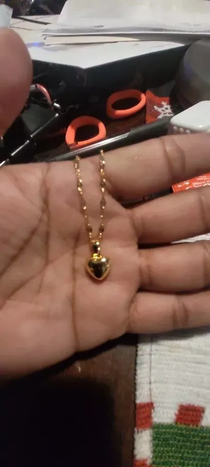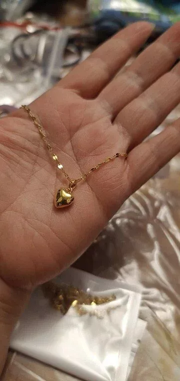 • Design: Classic heart-shaped pendant paired with a trendy lip chain