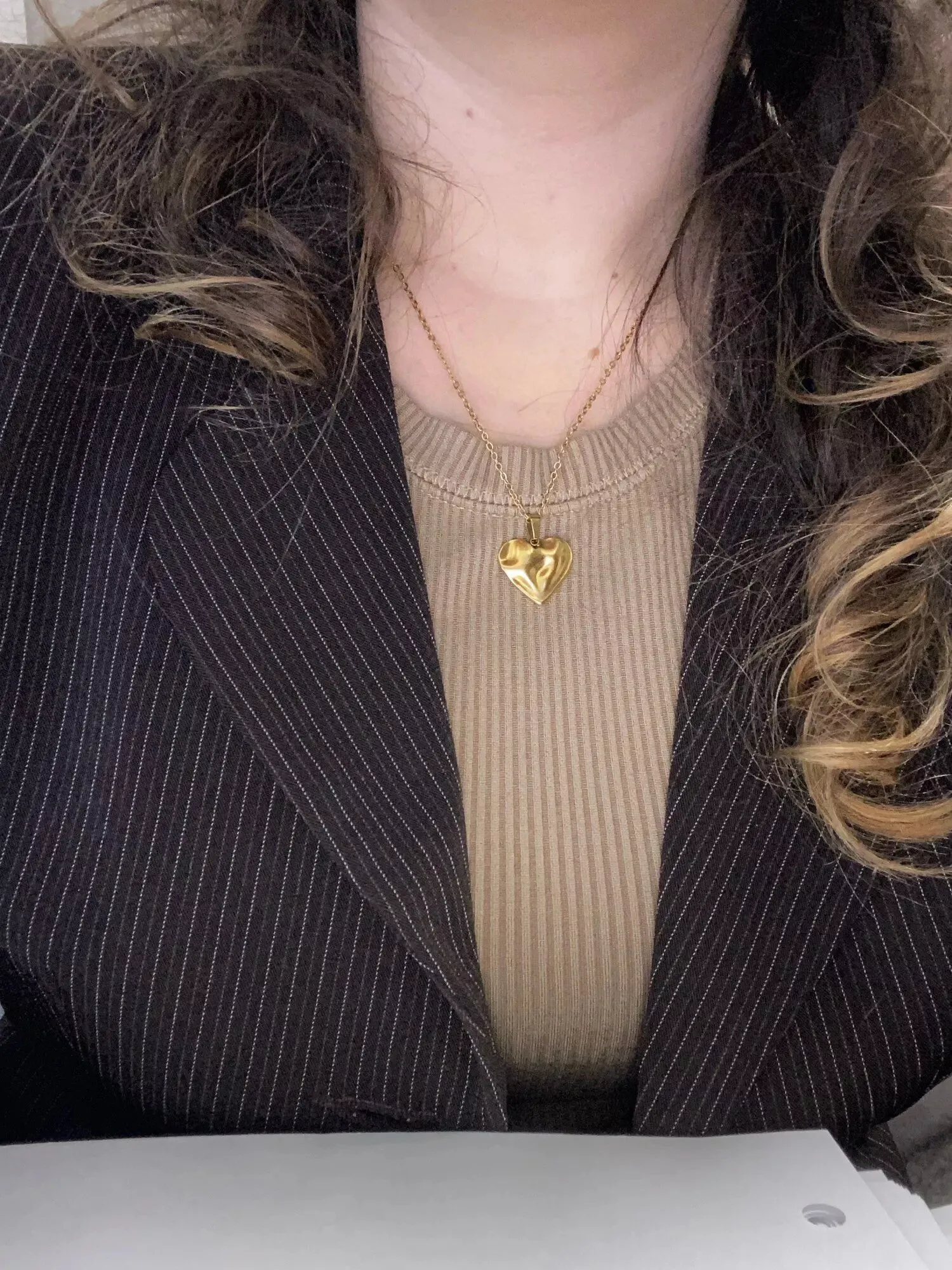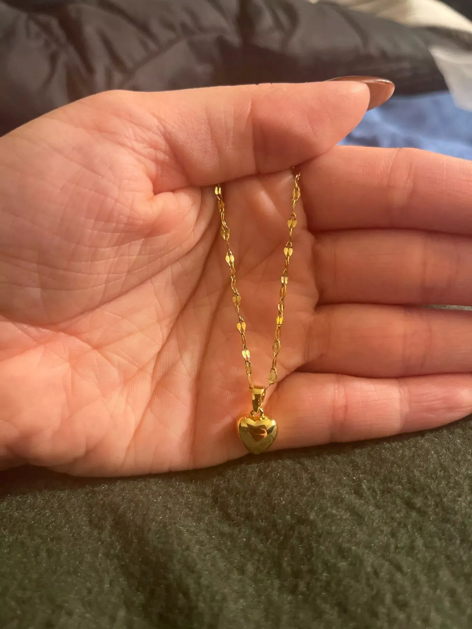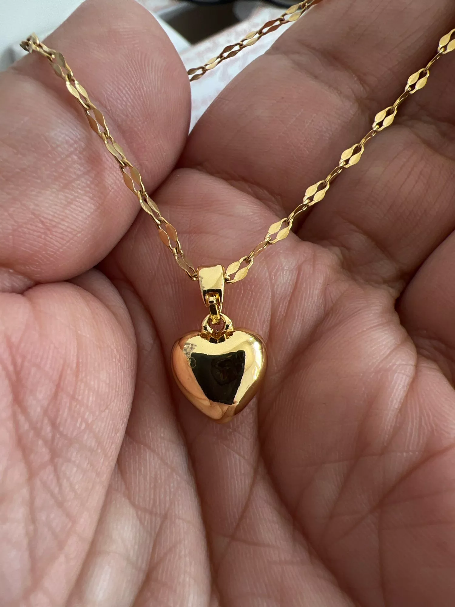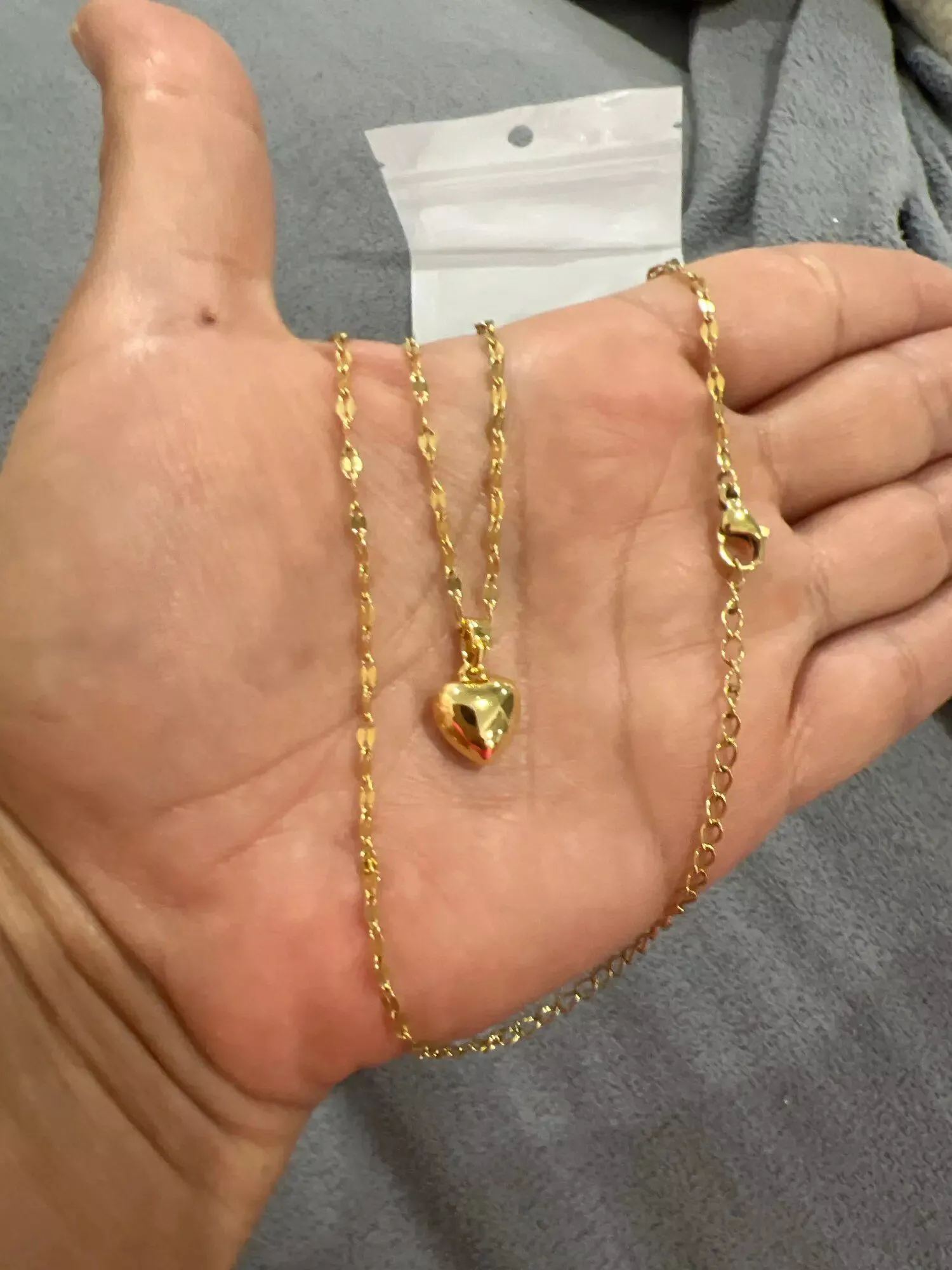 • Design: Classic heart-shaped pendant paired with a trendy lip chain