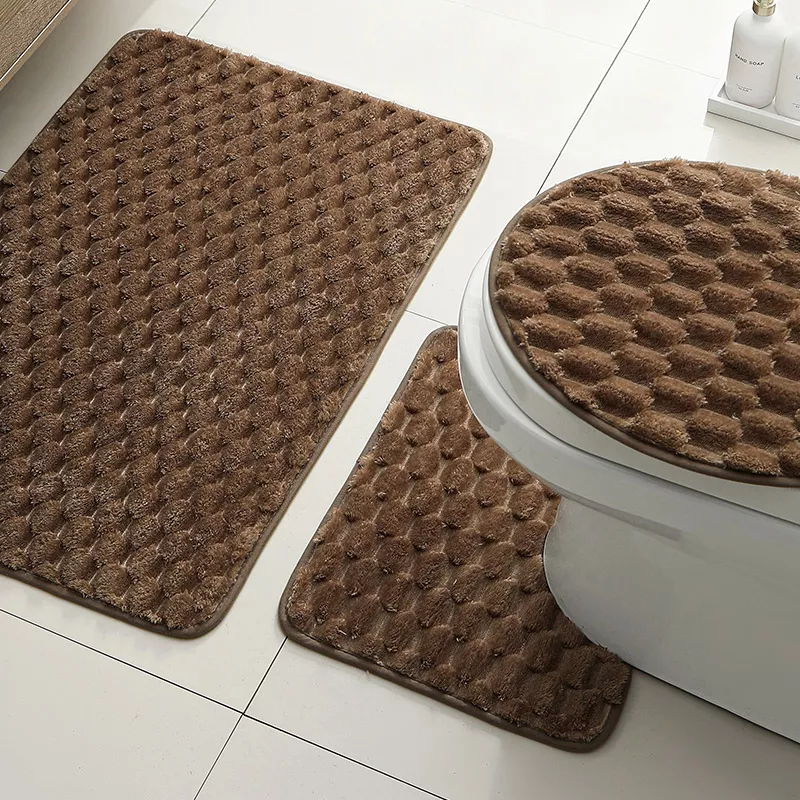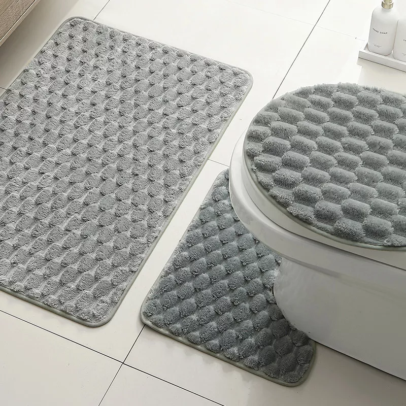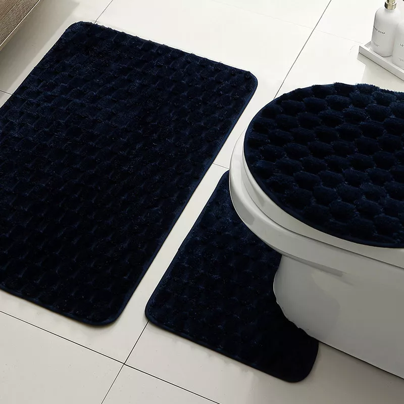 • Three-piece set: toilet lid cover, U-shaped contour mat, and rectangular bath mat