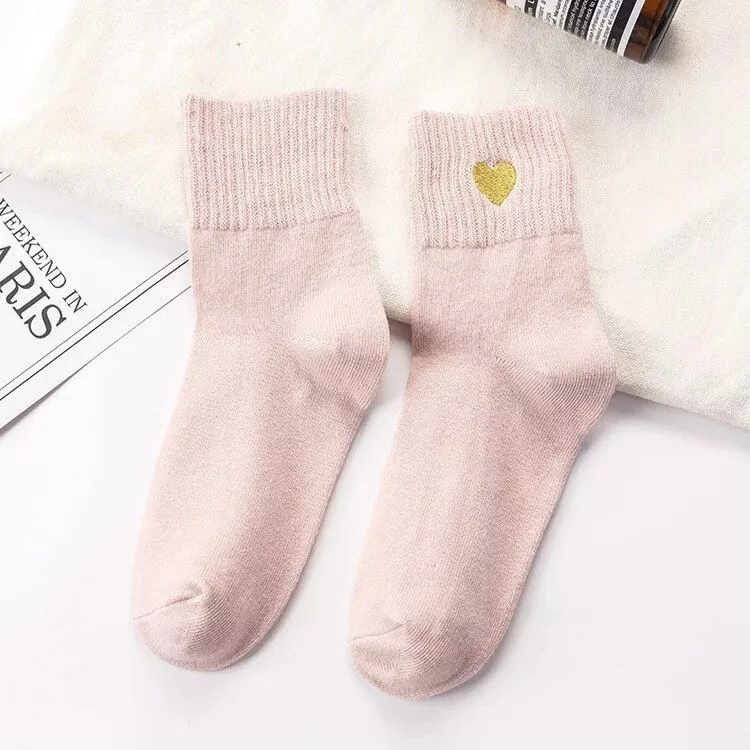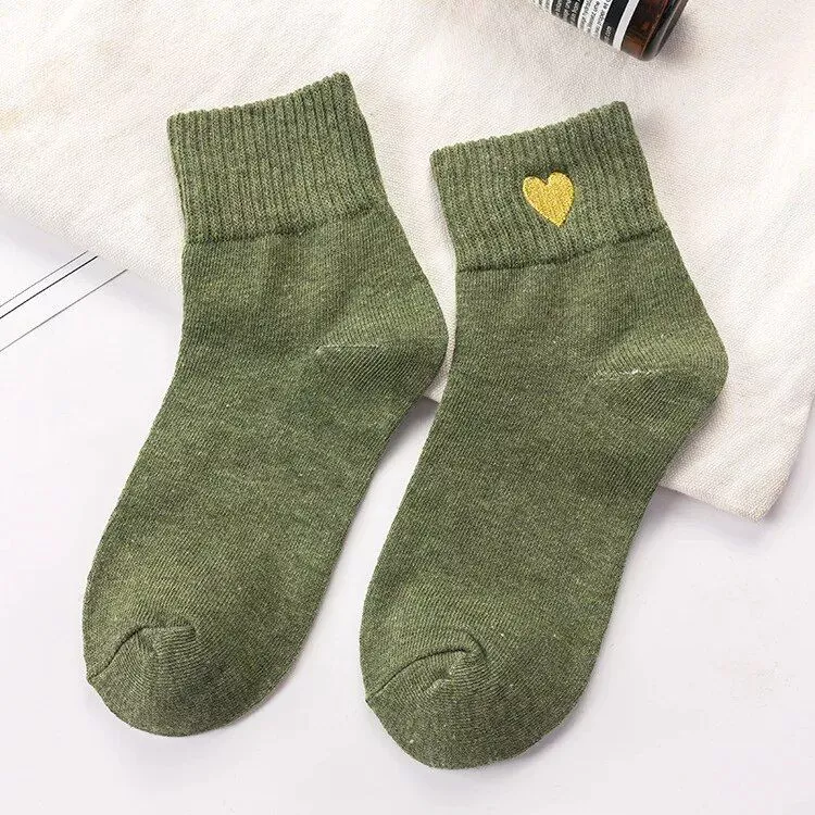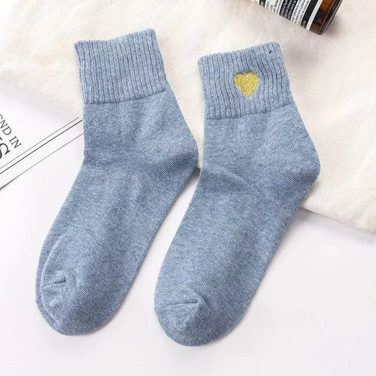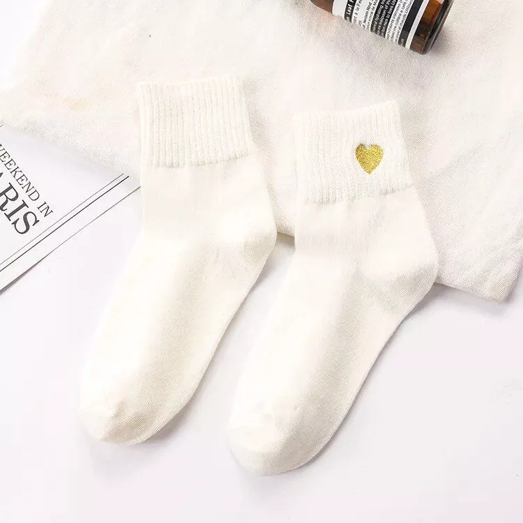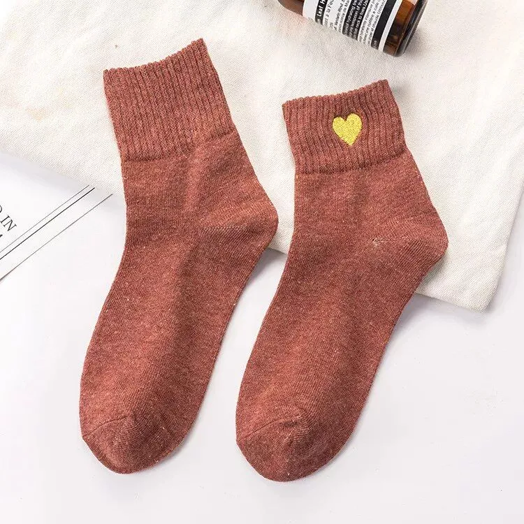 Embrace Coziness and Style with Our Heart-Embroidered Casual Socks