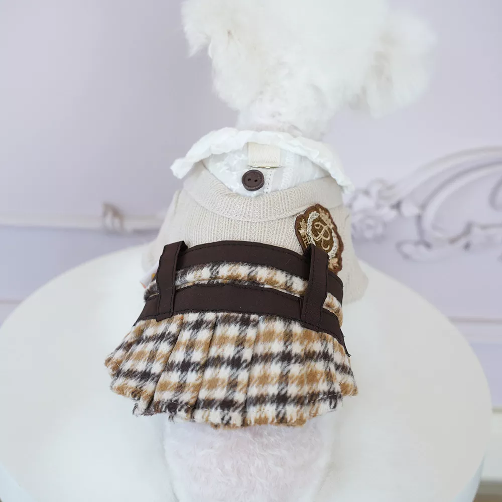 Winter Plaid Pet Dress Coat for Cats & Small Dogs