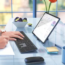 - Ergonomic and Slim Design: Typing and clicking are a breeze with responsive scissor-switch keys and an ergonomic stand.
